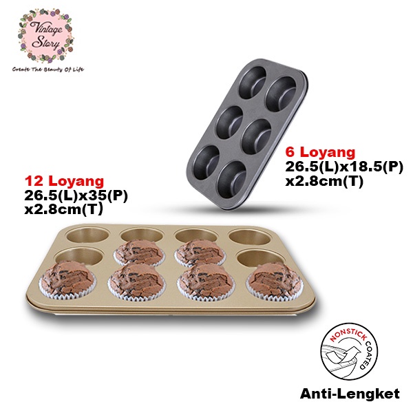 Loyang Muffin Premium Tray Cupcake Anti Lengket High Carbon Steel 6 atau 12 Cetakan