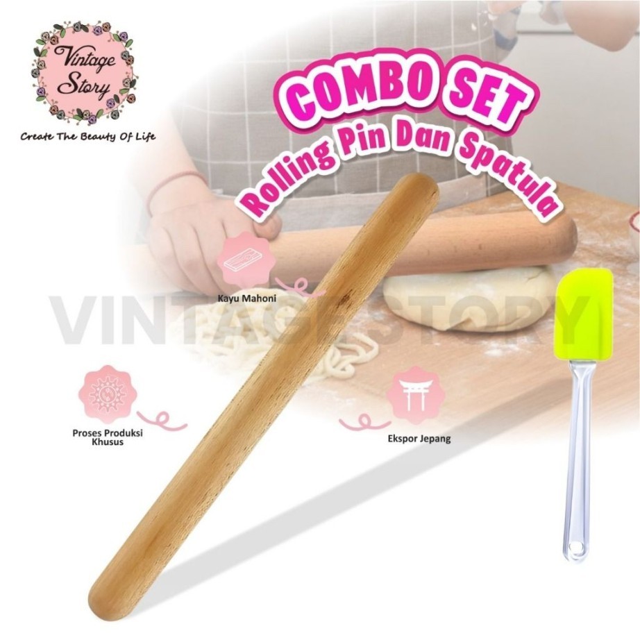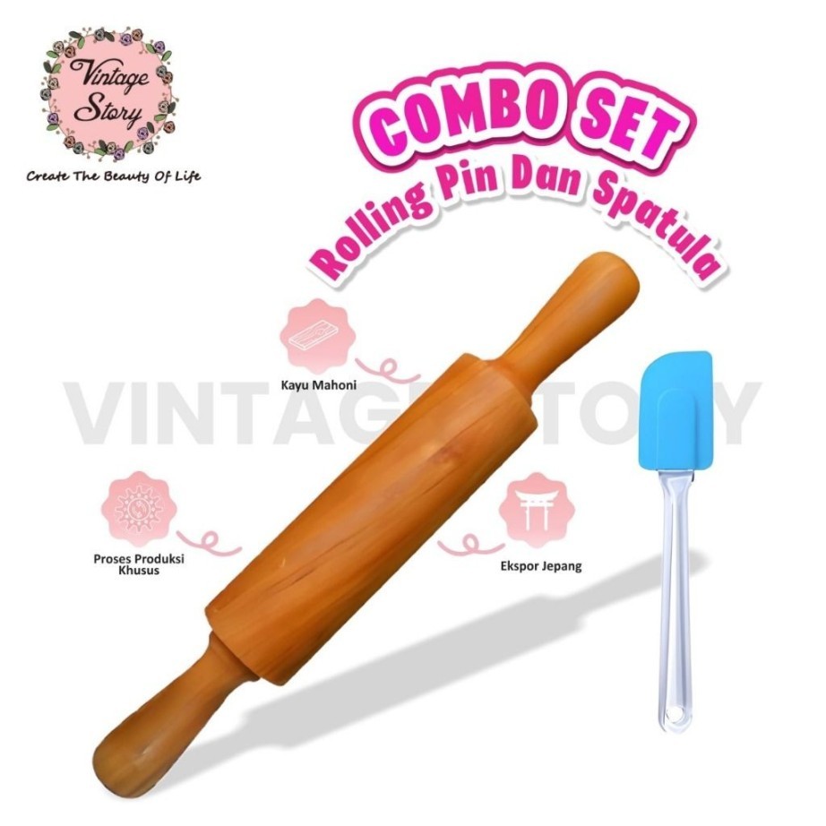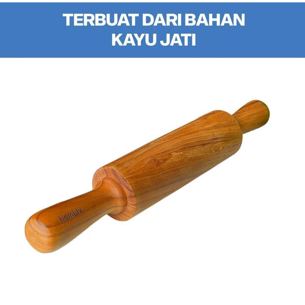 Rolling Pin Kayu Mahoni Premium Penggiling Adonan Kue Pizza Ukuran 33cm