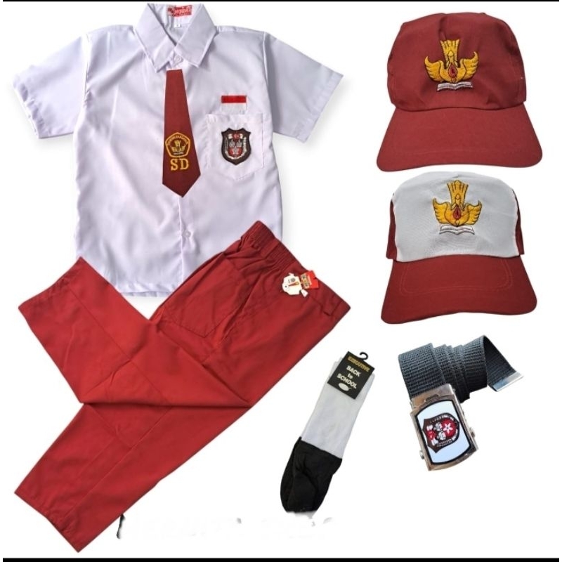 seragam sekolah SD setelan super lengkap baju lengan pendek celana panjang