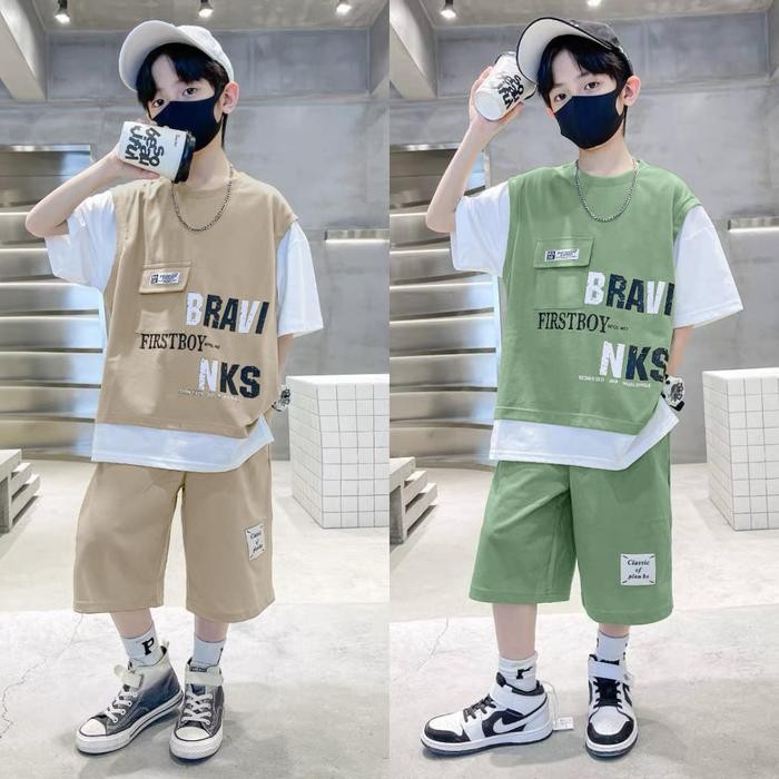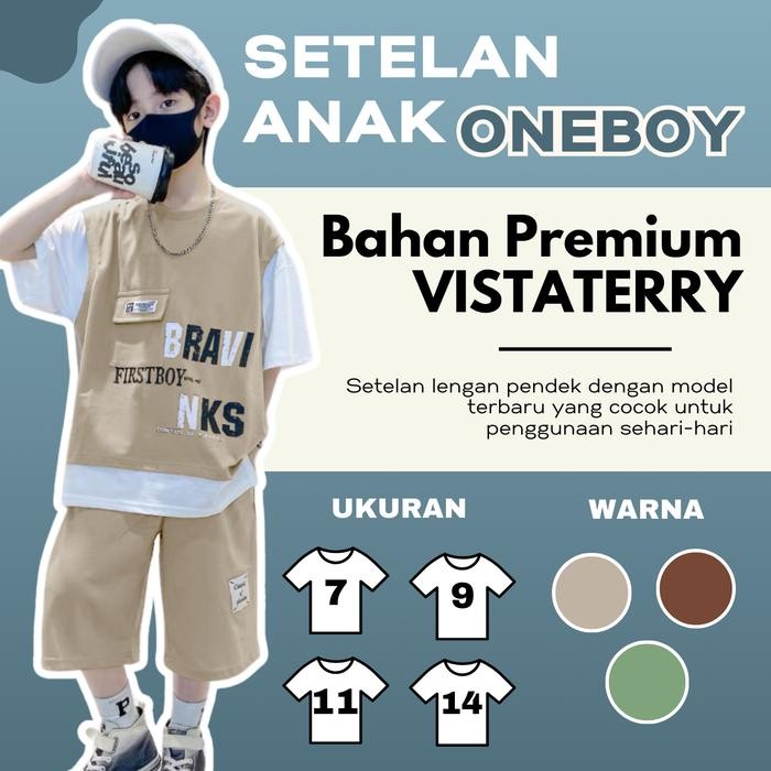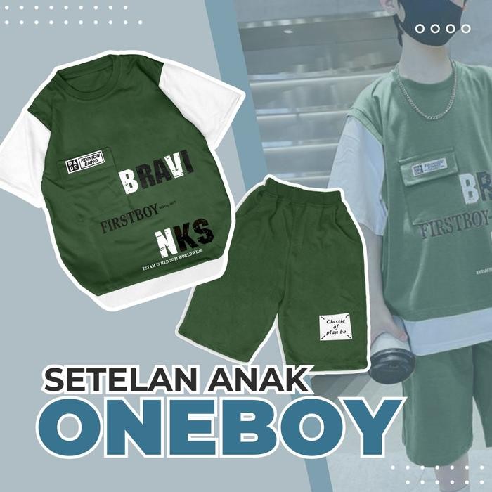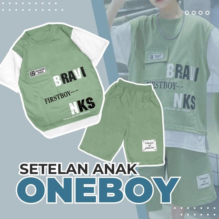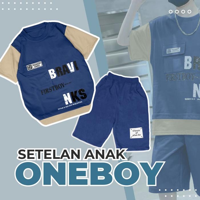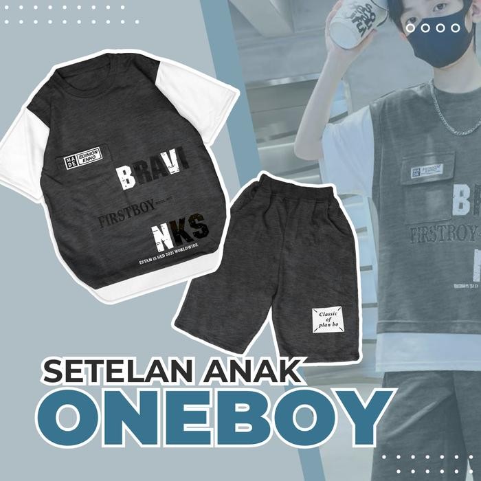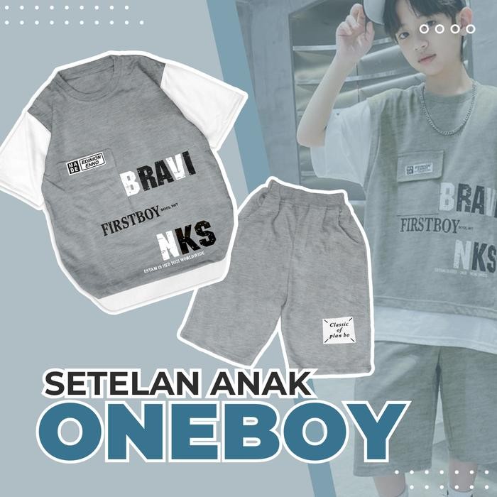 Amspro - Setelan Anak Laki Laki 1 Set Ootd Anak Kece Oneboy Baju Anak Cowok Celana Lengan Pendek