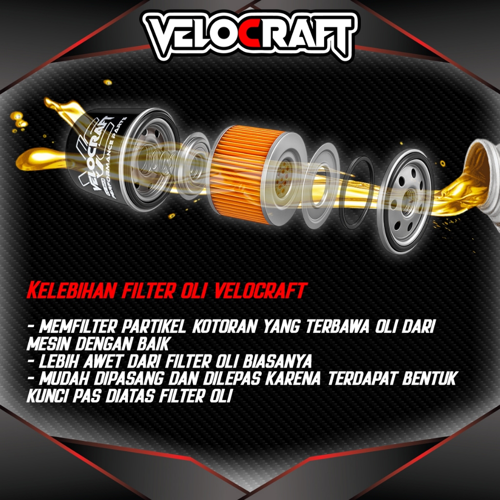 VELOCRAFT Filter Oli VC-141 Kualitas Premium untuk Xabre Scorpio Jupiter Z Mx King XMAX 250 Xmax300 Vega ZR XSR 155 MT15 R15 V3 Meningkatkan Efisiensi Mesin Memperpanjang Umur Kendaraan