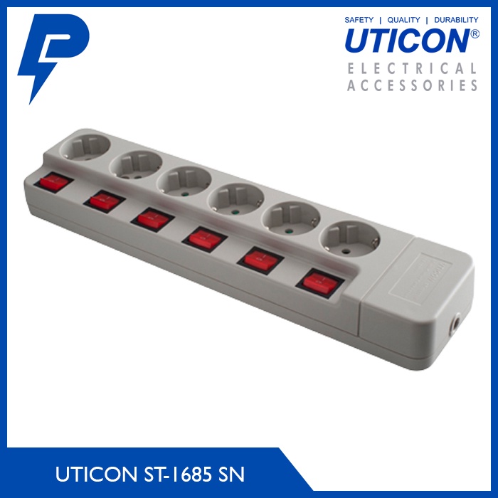 STOP KONTAK 6 LUBANG SAKLAR MASING-MASING + PENGAMAN UTICON ST-1685 SN