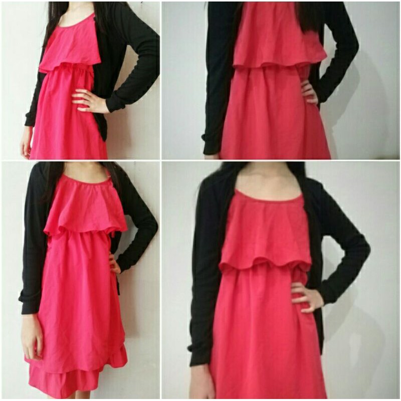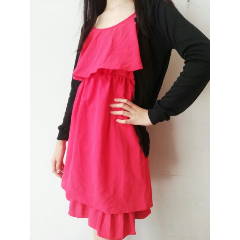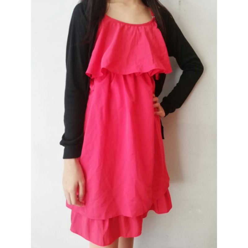 Dress Merah Bolero set Bolero Hitam