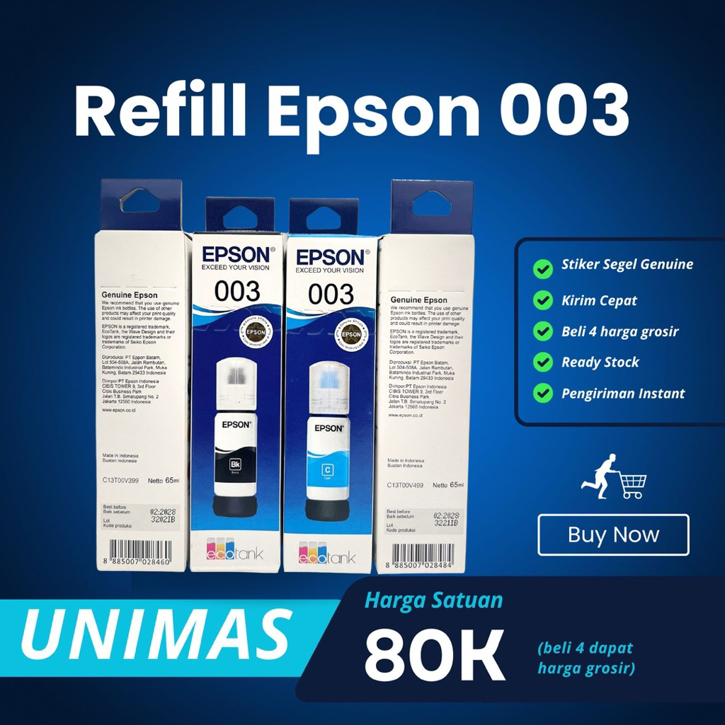 Refill Tinta Epson 003 L-Series – Segel Aman – Grosir & Kirim Cepat Balikpapan Samarinda Kaltim