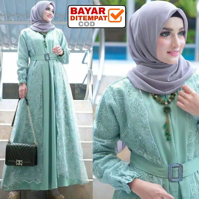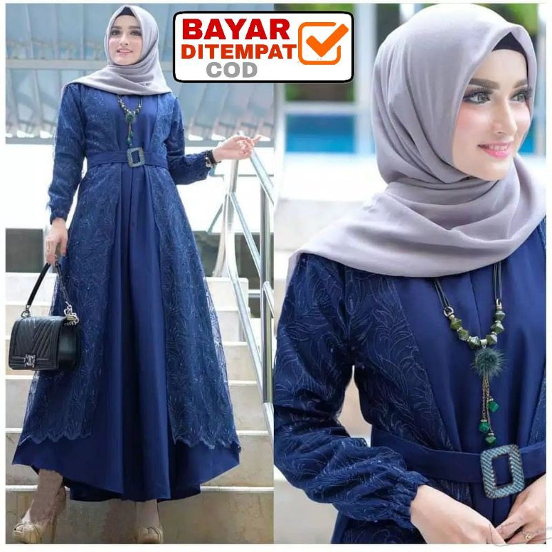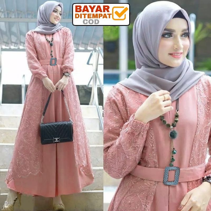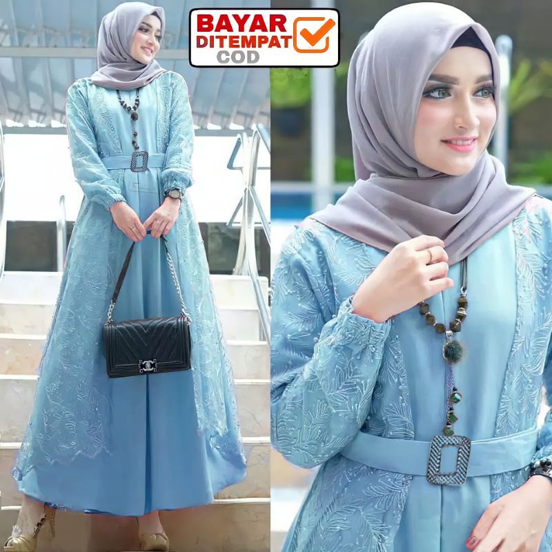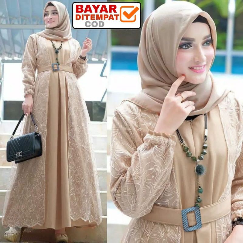Size L XL XXL / Gamis Muslim Andien Pearly / Gamis Brukat Tulle Tile Premium Jumbo Murah Brokat