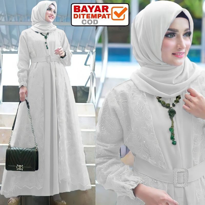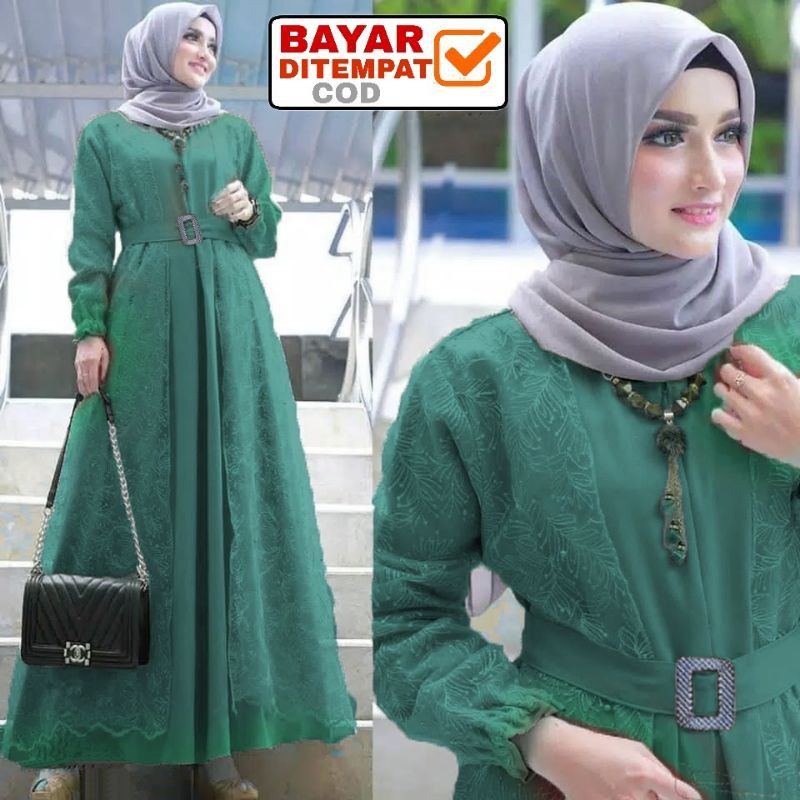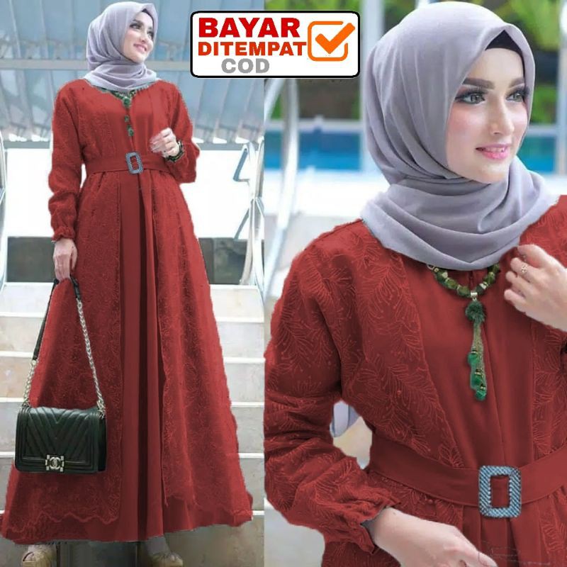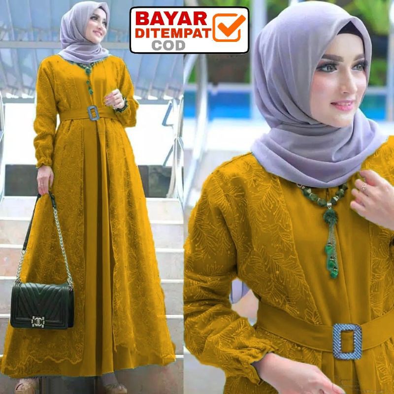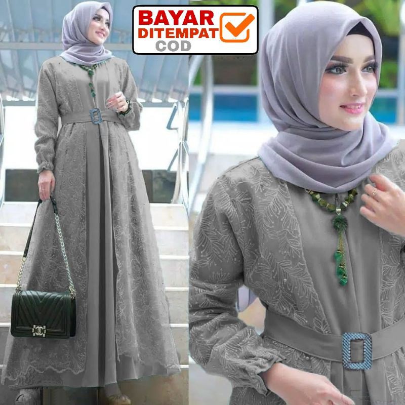 Size L XL XXL / Gamis Muslim Andien Pearly / Gamis Brukat Tulle Tile Premium Jumbo Murah Brokat