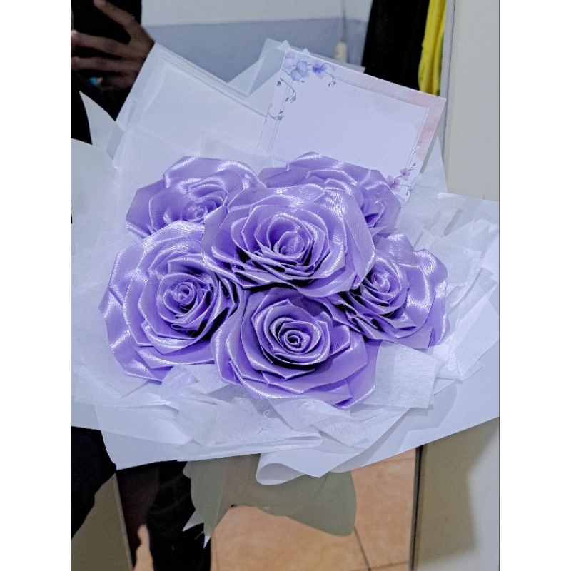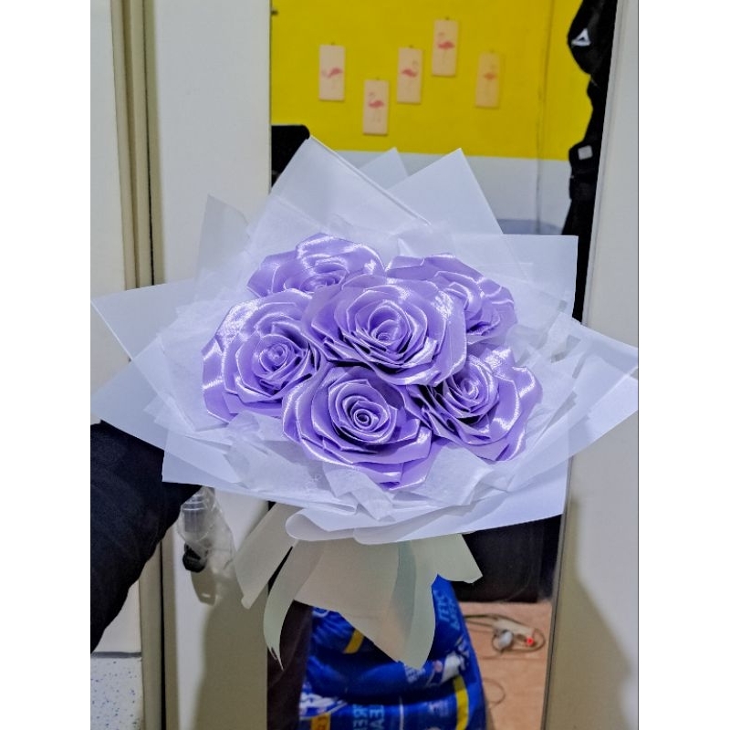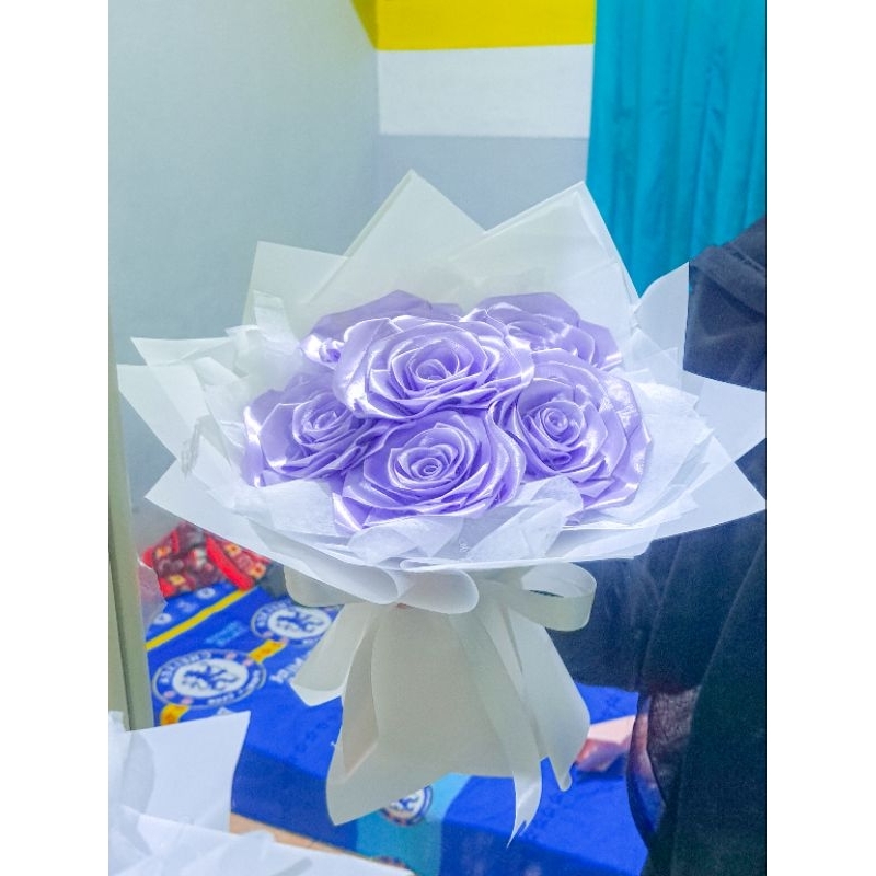 la flo bucket buket bouqet pita satin ungu 6 tangkai kado pacar graduation gift birthday gift