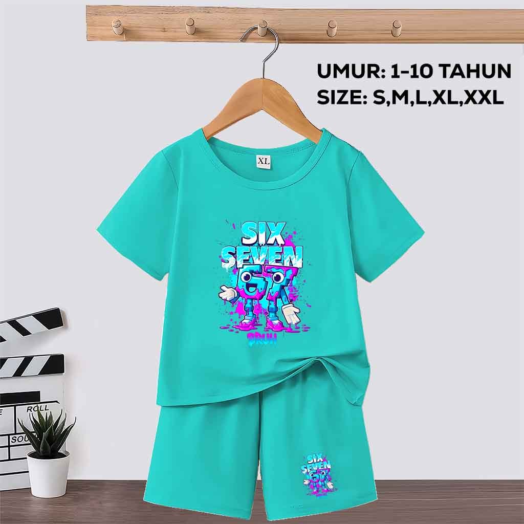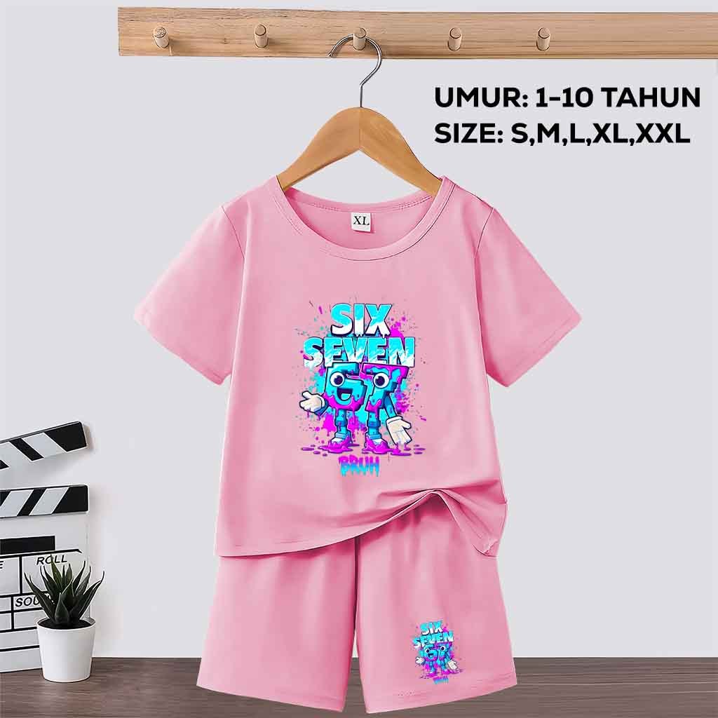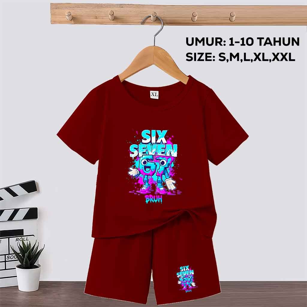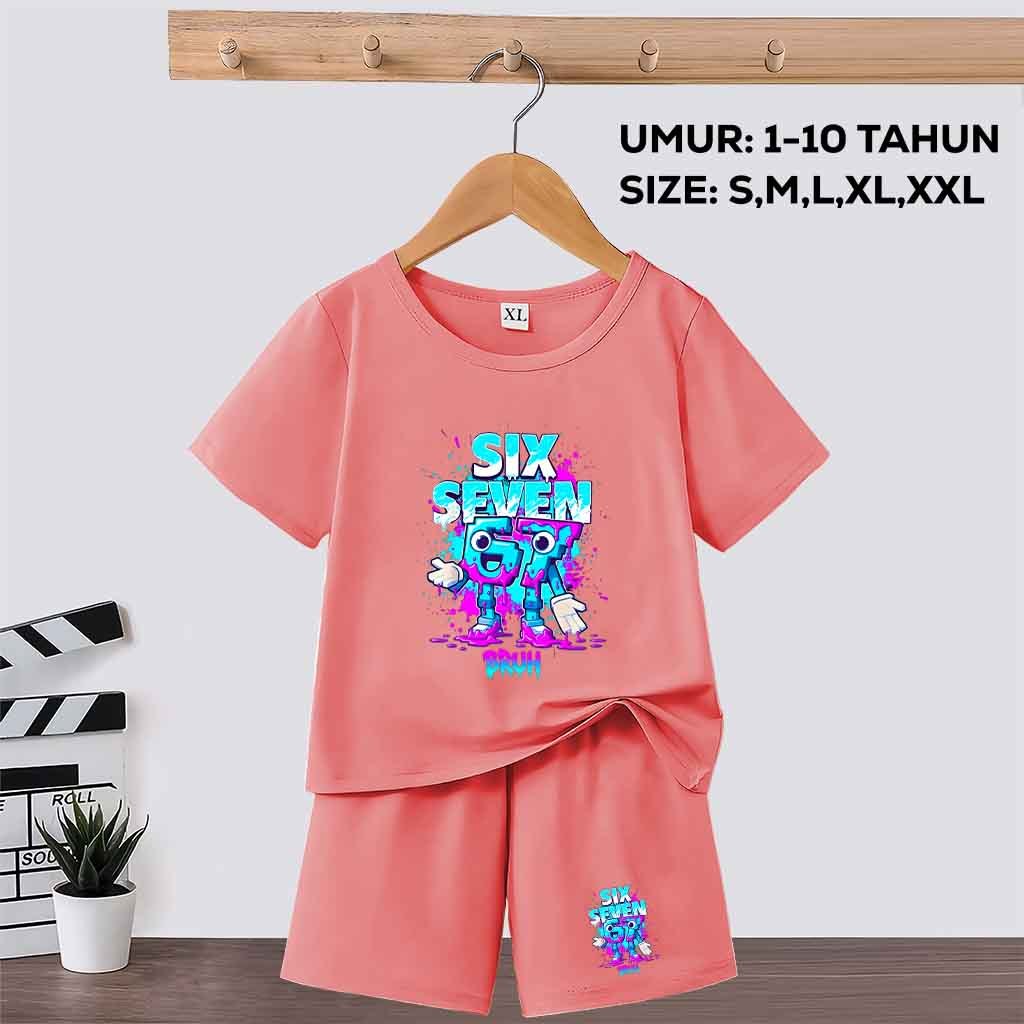 Baju Setelan Anak Laki Laki/Perempuan motif anomali 67 six seven steal a brainrot umur 1-10 tahun