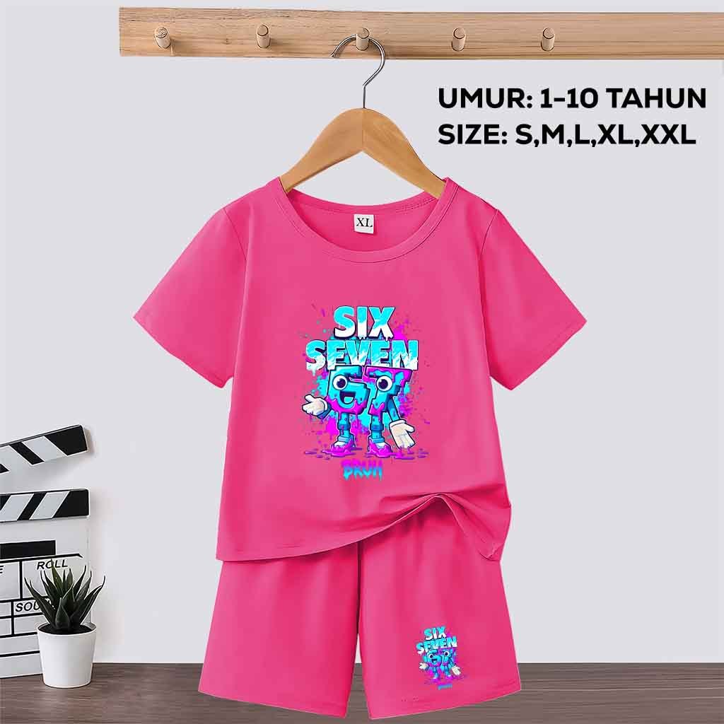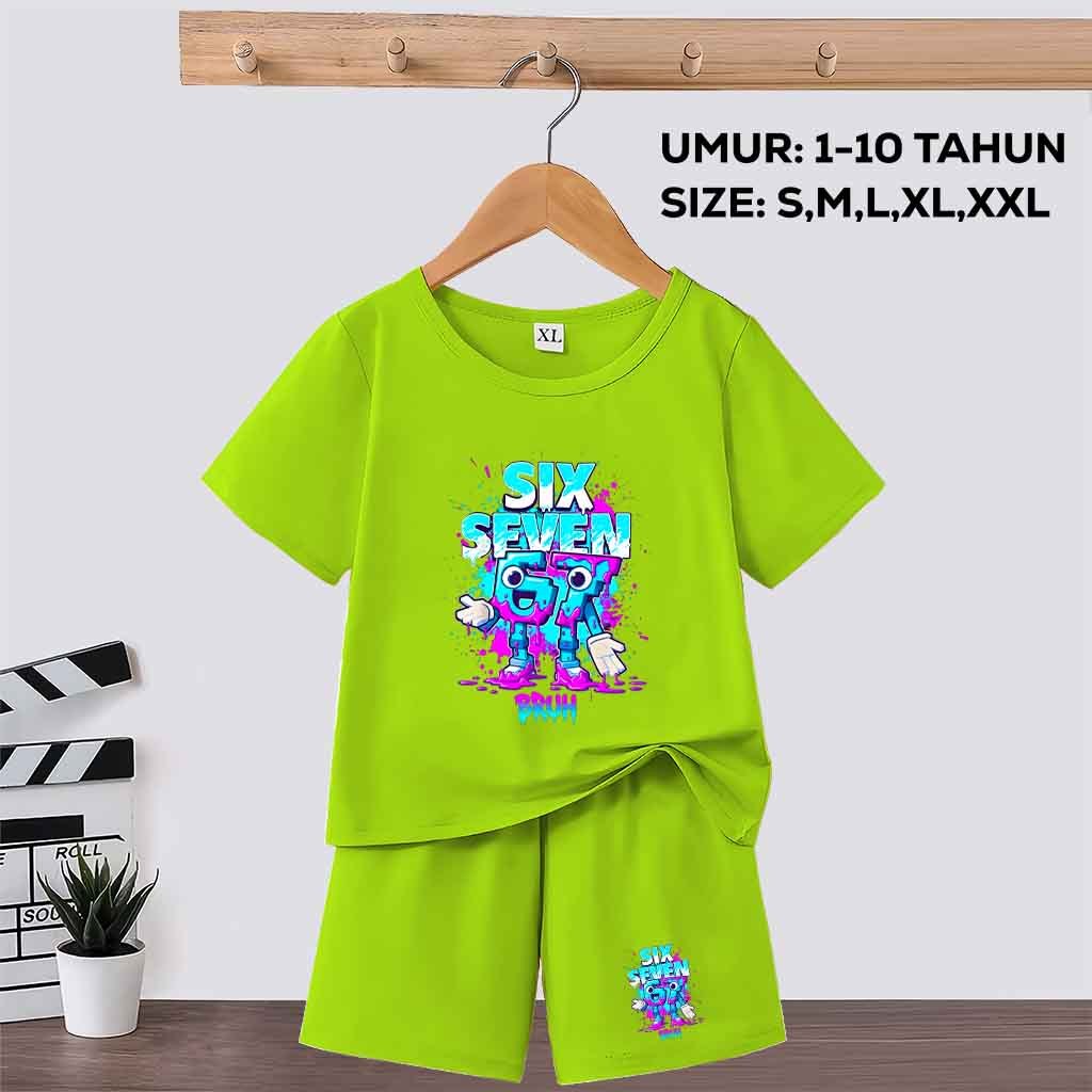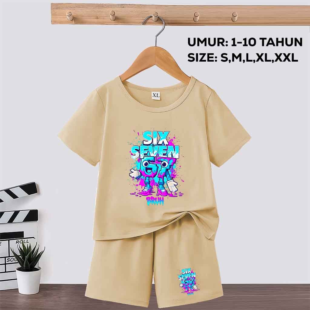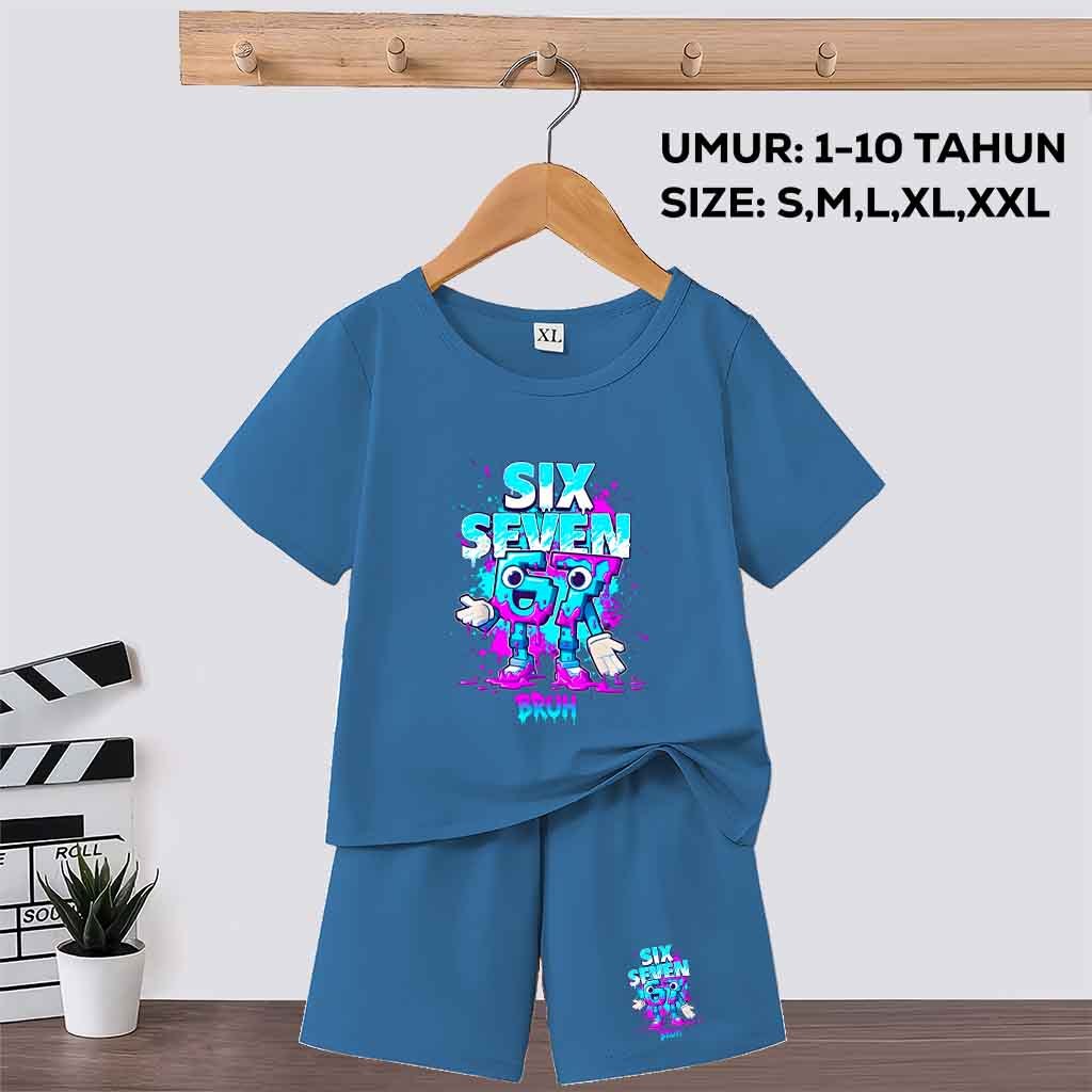 Baju Setelan Anak Laki Laki/Perempuan motif anomali 67 six seven steal a brainrot umur 1-10 tahun