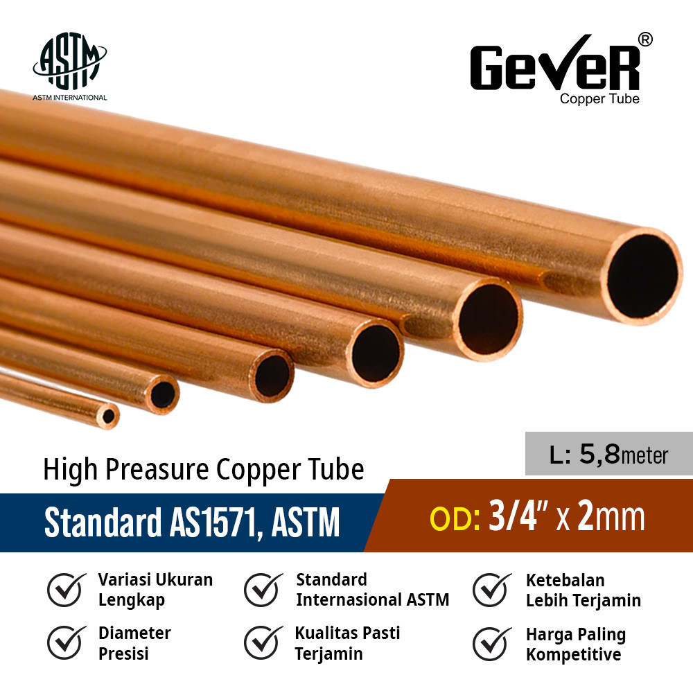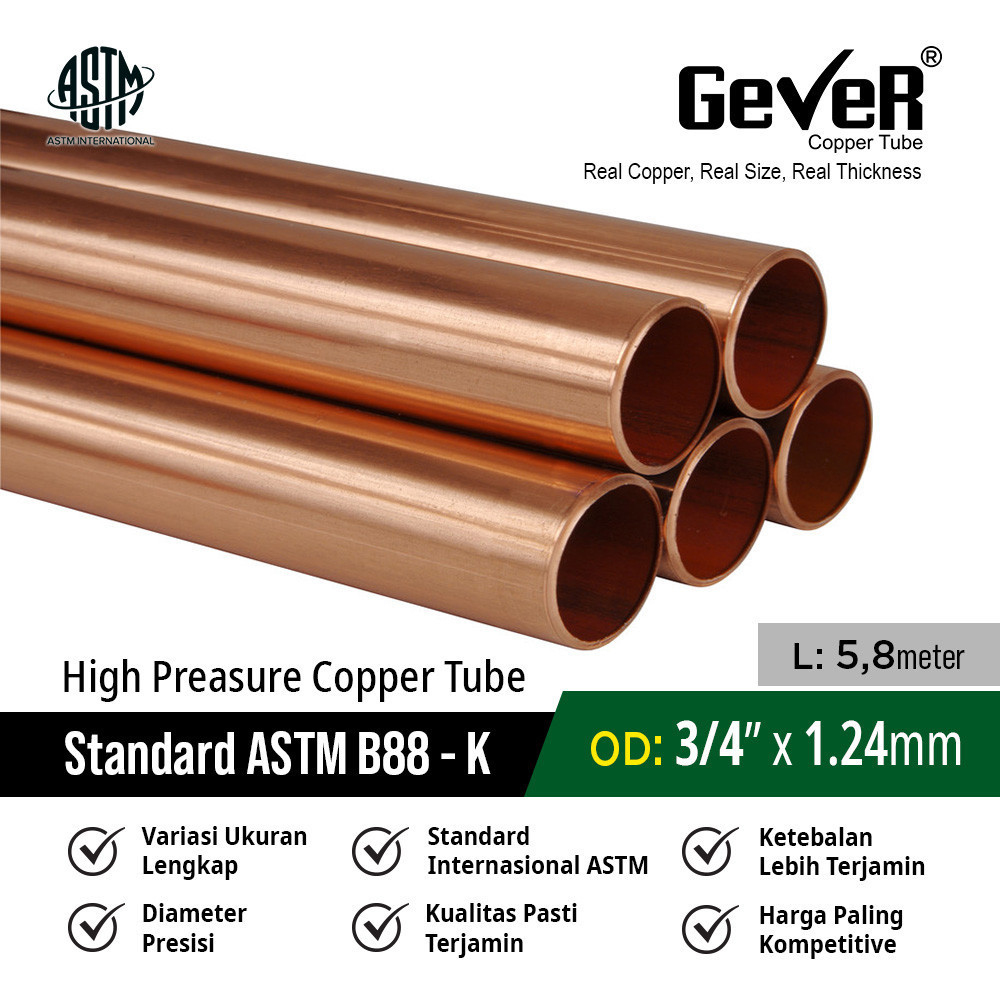 PIPA TEMBAGA BATANG 3/4 INCH ASTM Pjg 5.8 meter GEVER COPPER TUBE