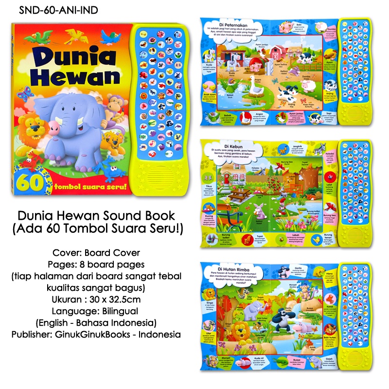 Dunia Hewan Sound Book 60 suara hewan & pengenalan nama hewan 2 bahasa (Bhs Indonesia & Inggris)