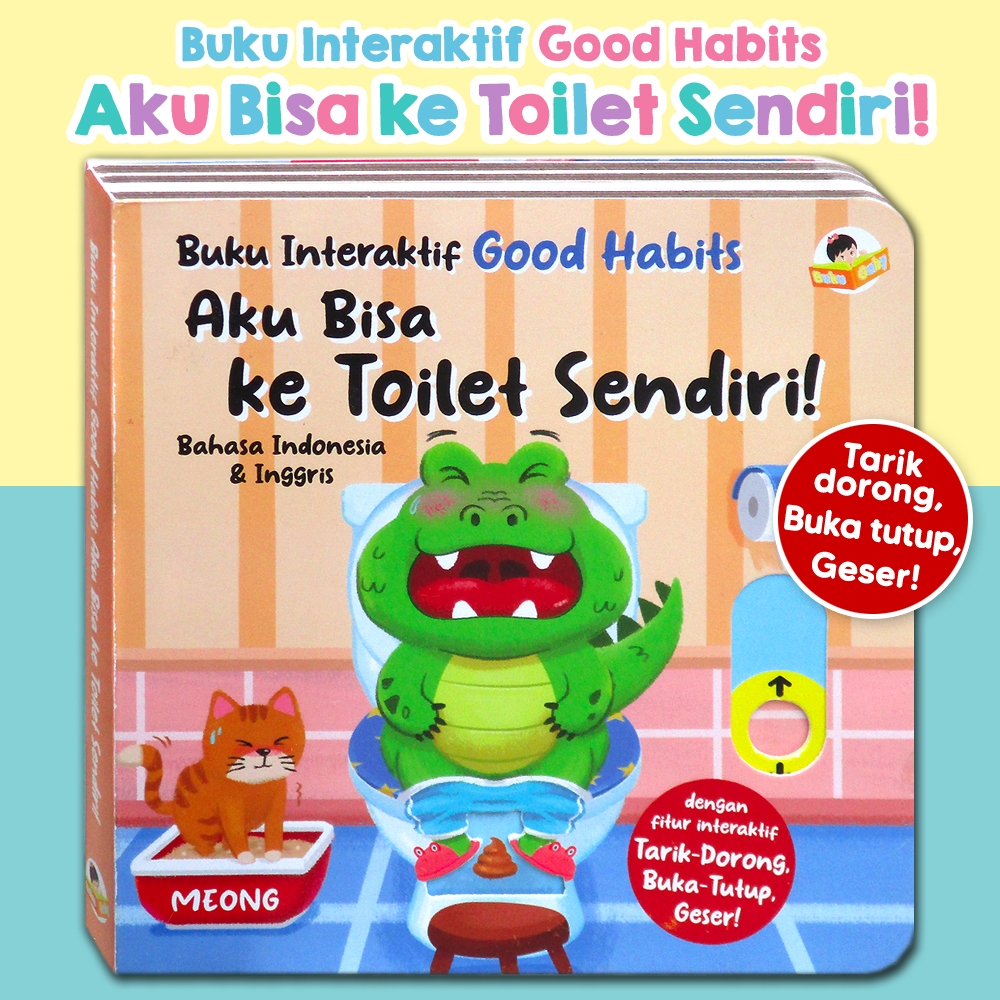 Buku Interaktif Good Habits dengan fitur Tarik-Dorong, Buka-Tutup, Geser! - Rajin Gosok Gigi, Mandi itu Menyenangkan, Bisa Makan Sendiri, Bisa ke Toilet Sendiri