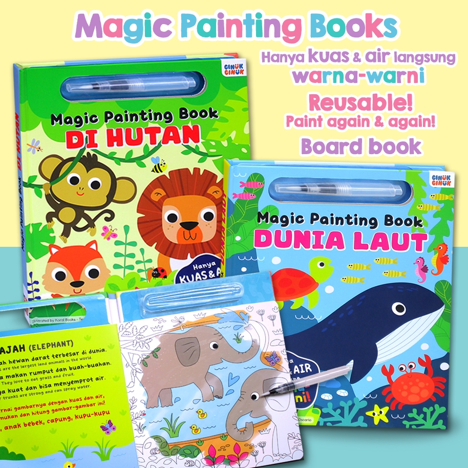 Buku Painting Ajaib pakai kuas + air aja! Reusable (bisa berulang kali) - Magic Water Painting Book