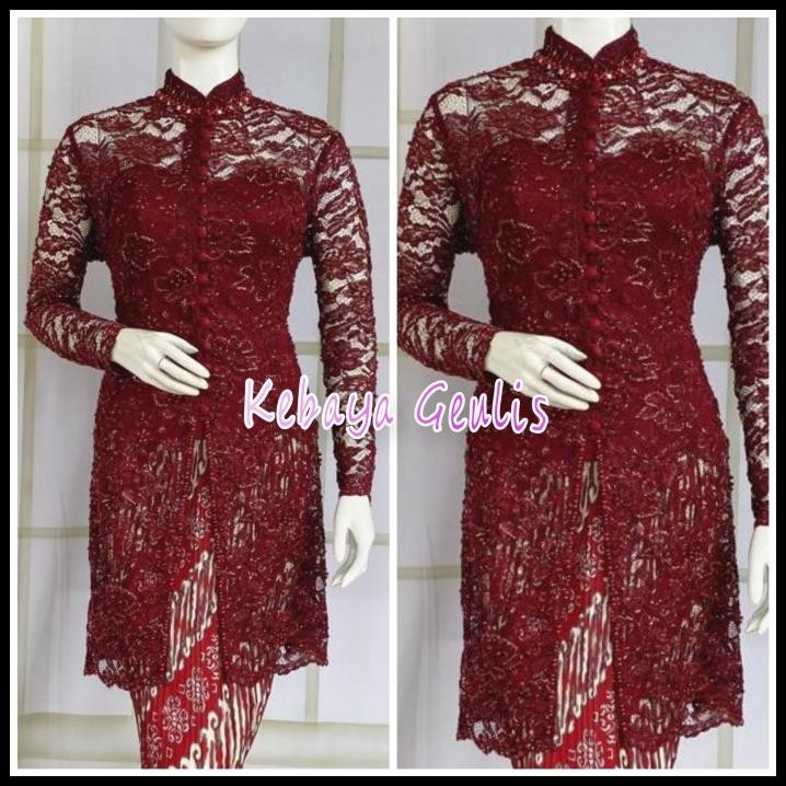 Atasan Kebaya Ibu Hajat Warna Maroon Kebaya Tunik Brokat Modern Best Seller