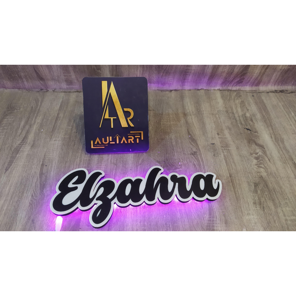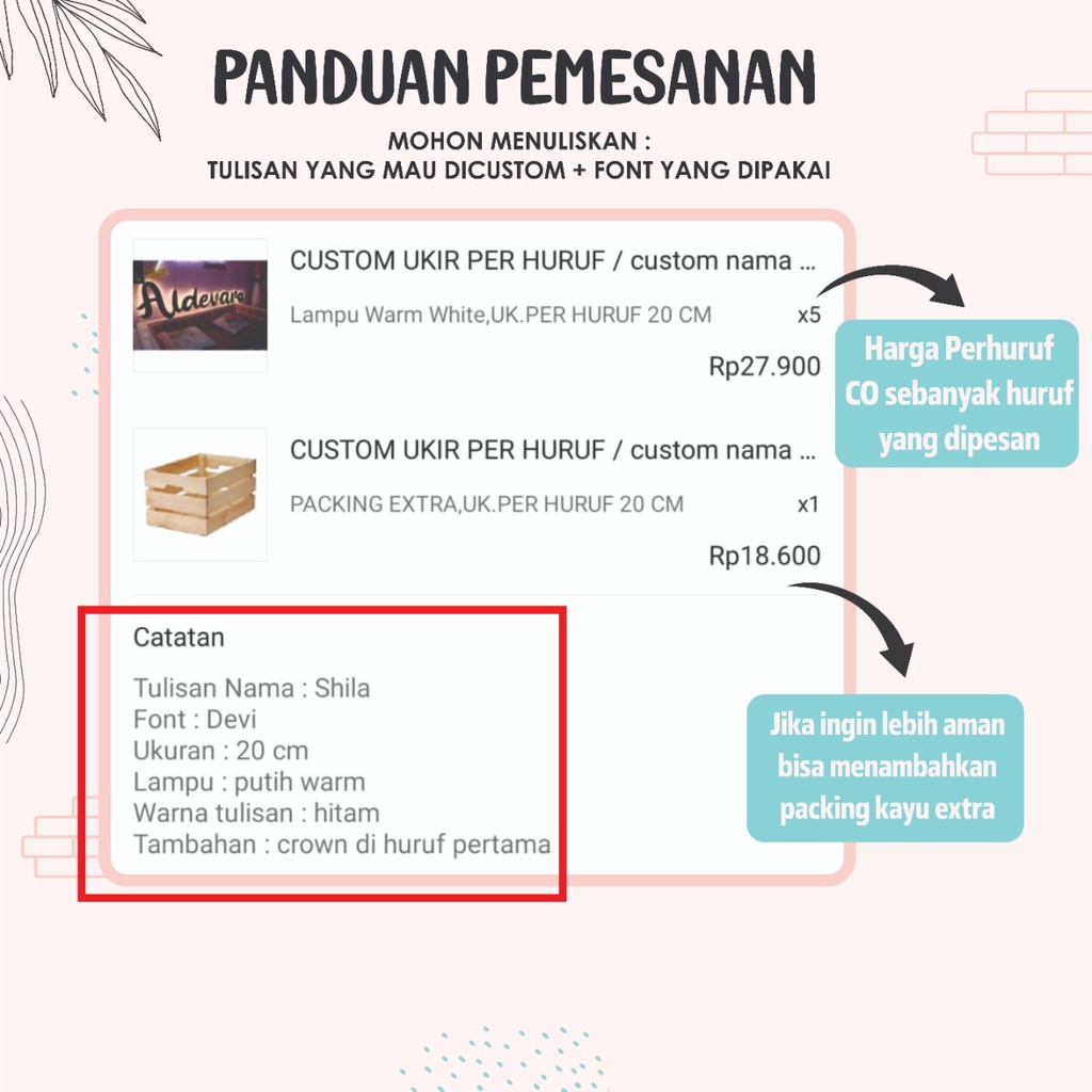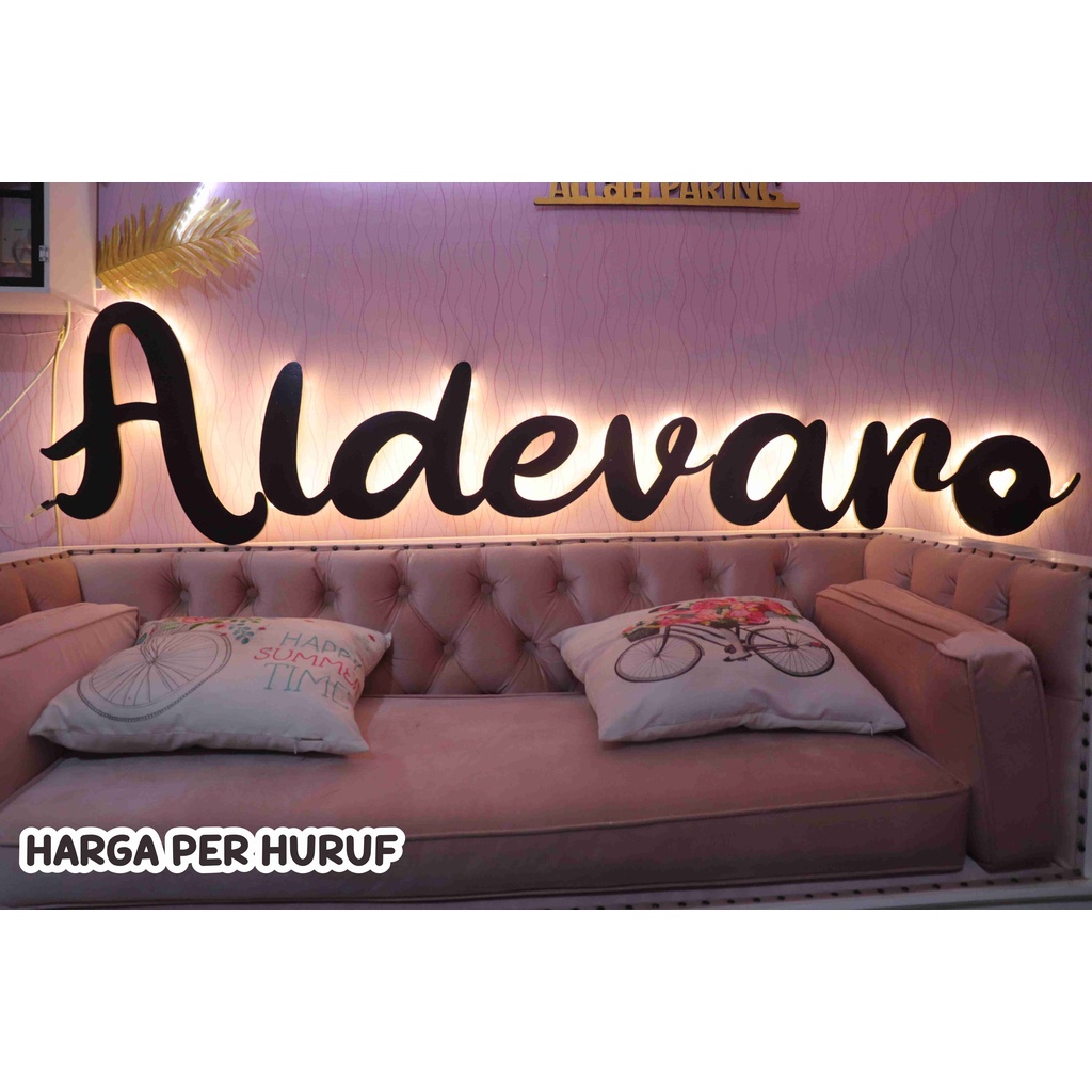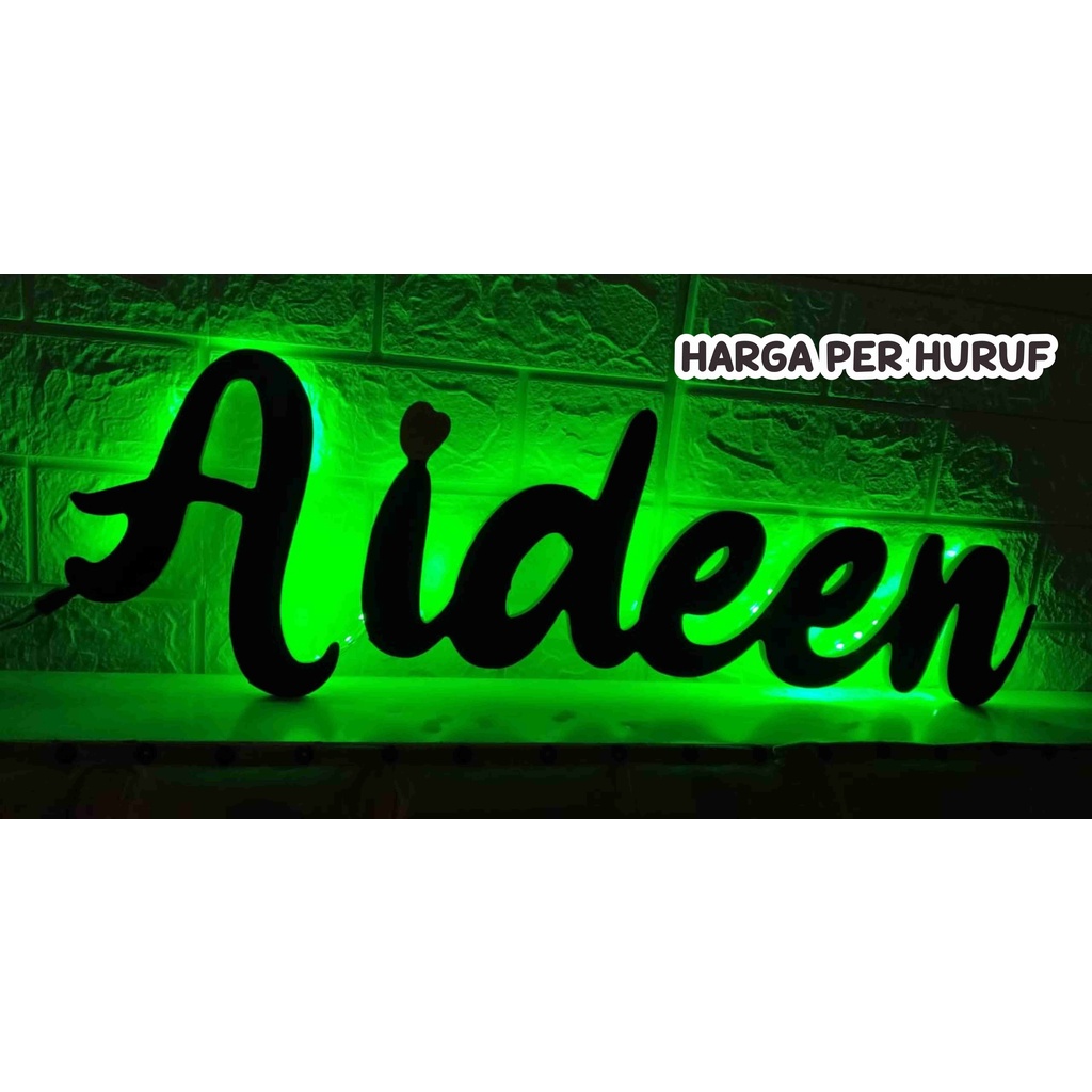 UKIR NAMA NYALA TULISAN KAYU 3D HURUF DINDING DEKORASI CUSTOM LOGO TIMBUL HURUF LAMPU HIASAN