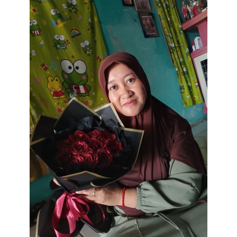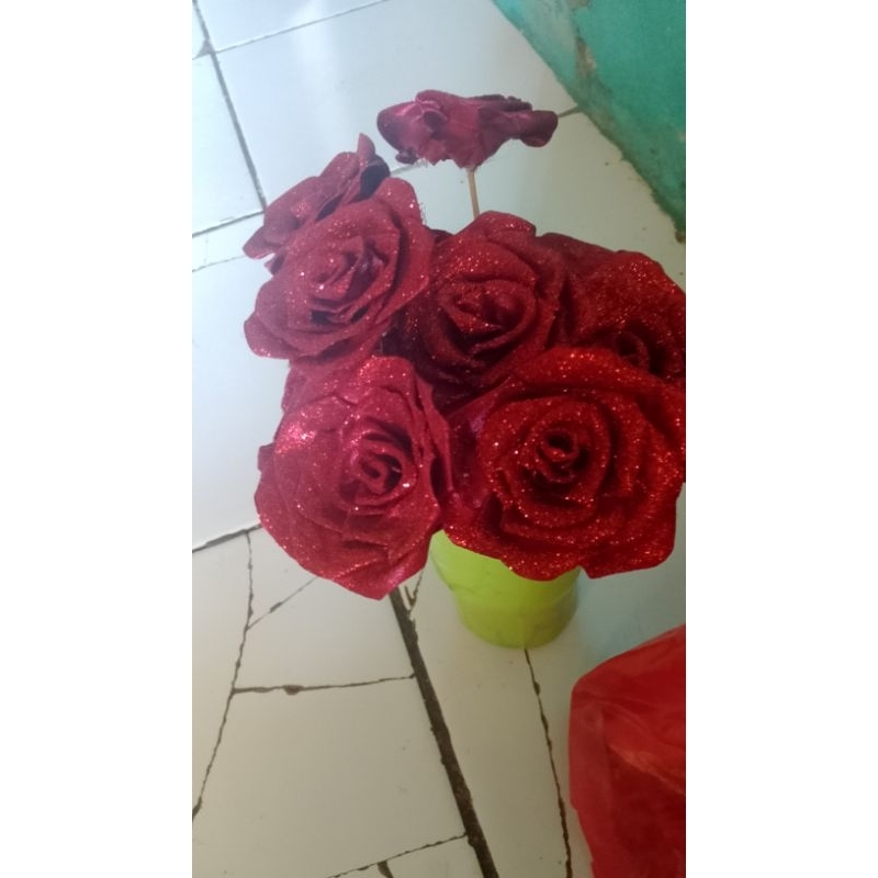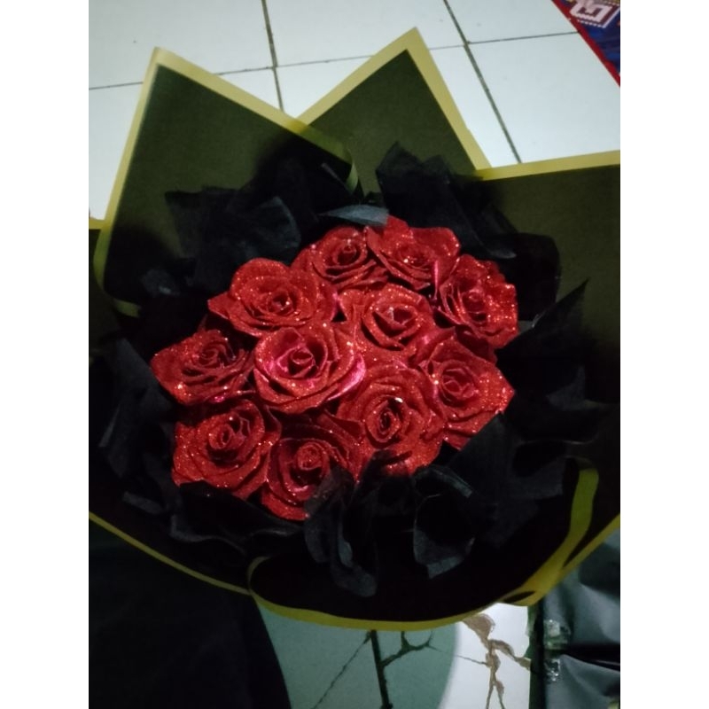 buket bunga satin geliter 10 tangkai