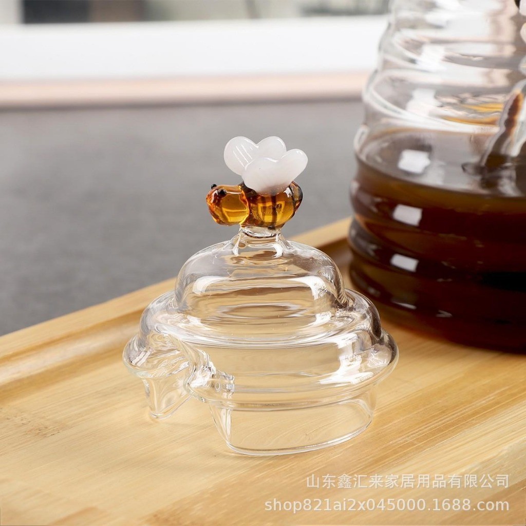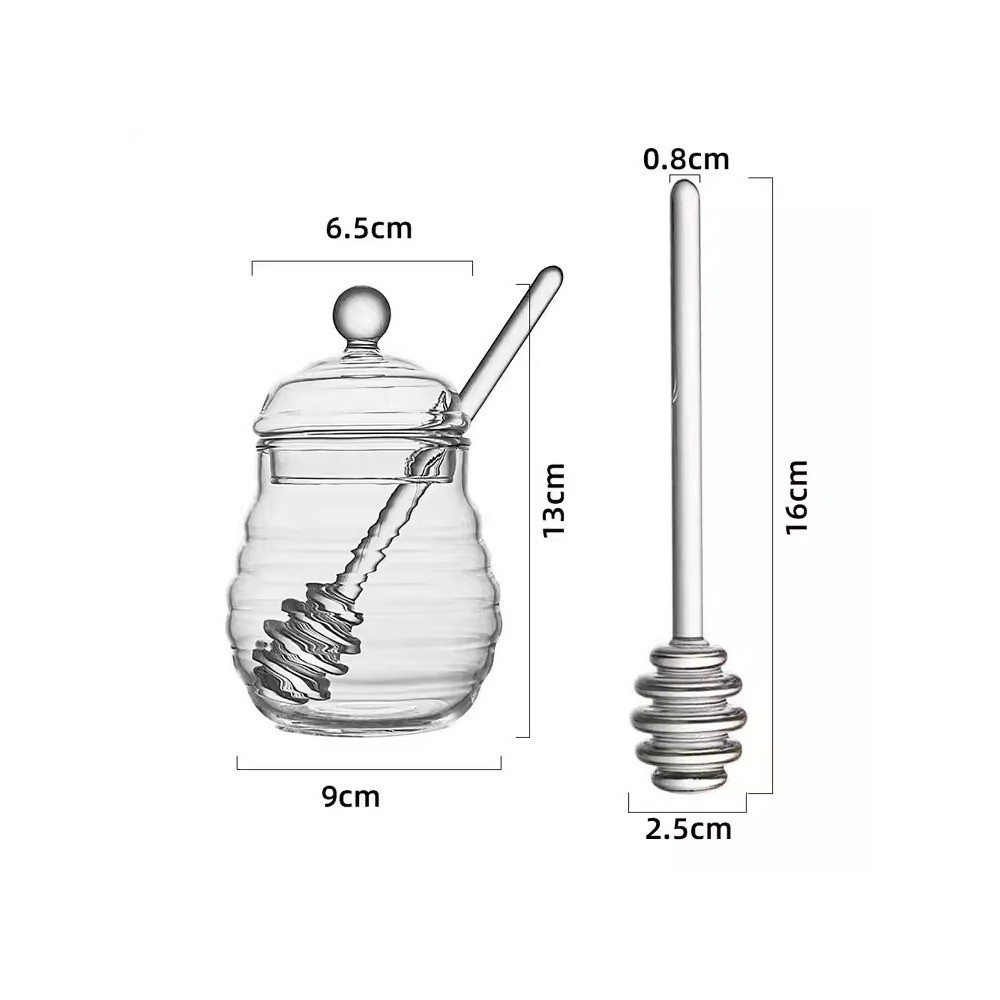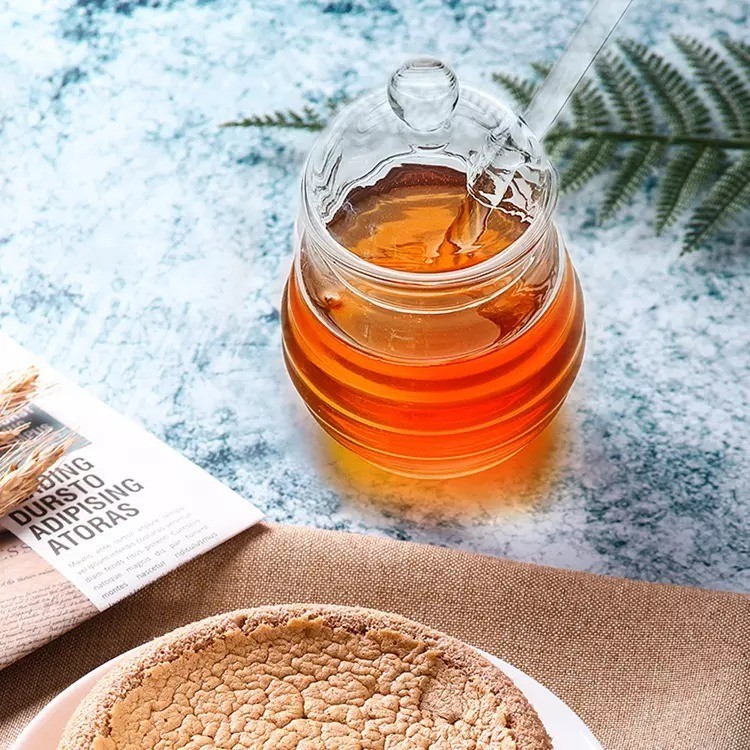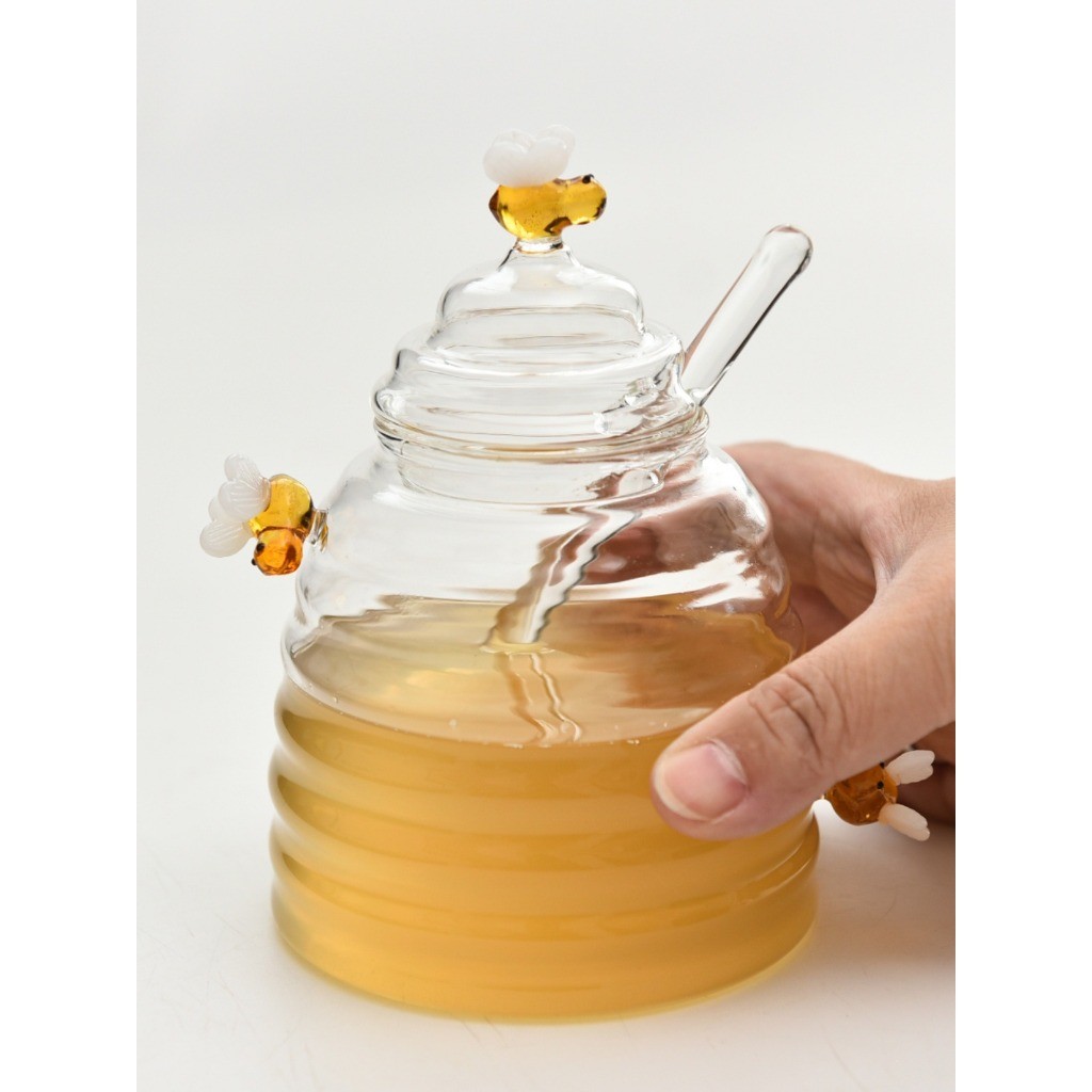 WINS Toples Madu Kaca Estetik Bentuk Sarang Lebah Dengan Dekorasi Lebah Dan Sendok Madu Kaca