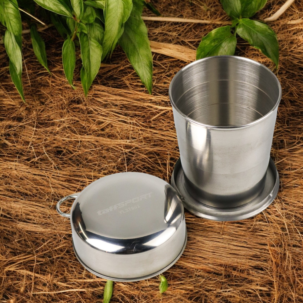 BETENGAN - TaffSPORT Gelas Lipat Stainless Steel Foldable Cup Carabiner 240ml - YL37802