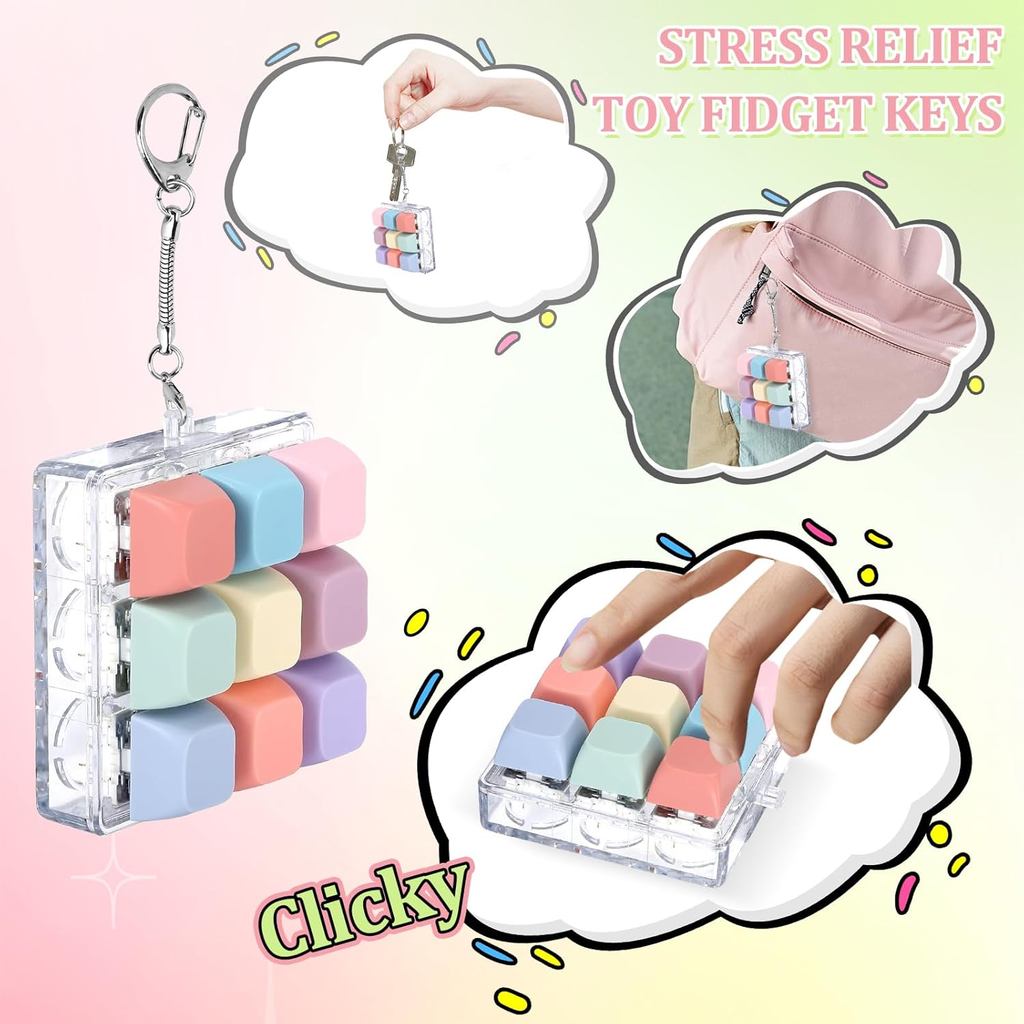 Keyboard Fidget Toy, Fidget Clicker Keychain Stress Relief Button Toy