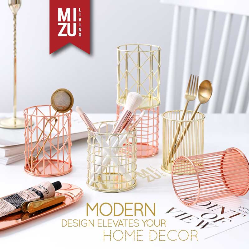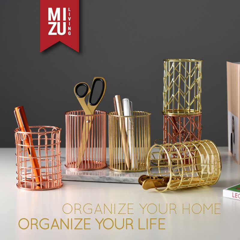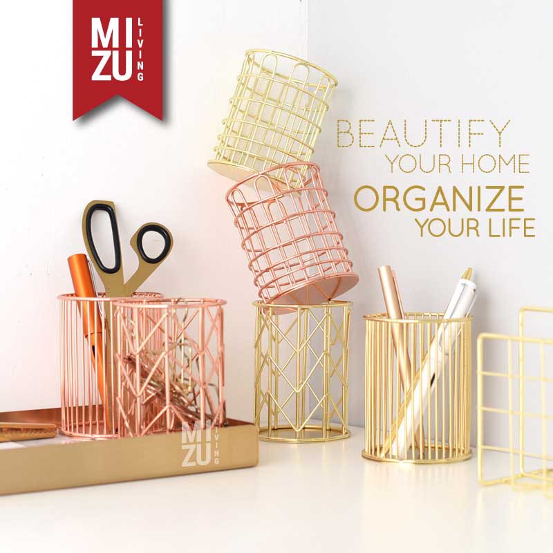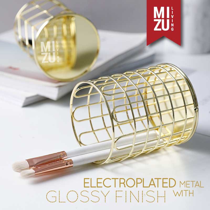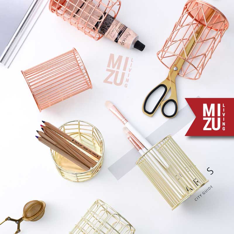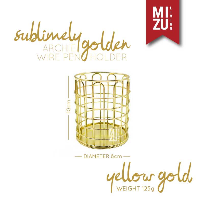 SUBLIMELY GOLDEN Wire Pen Holder Office Stationery Pencil Stand Tempat Alat Tulis ATK Serbaguna Emas