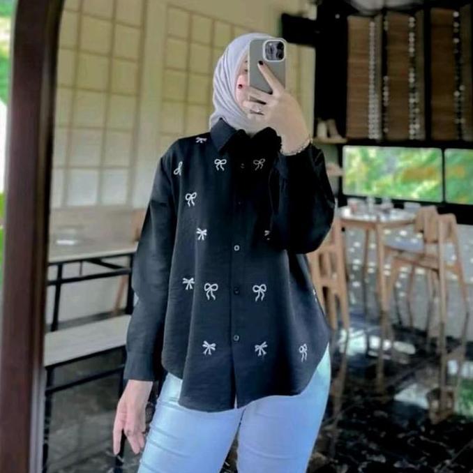 Saless Atasan Kemeja Luna Bordir Pita//Blus Wanita Dewasa Ld 110-120 Lengan Panjang Linen