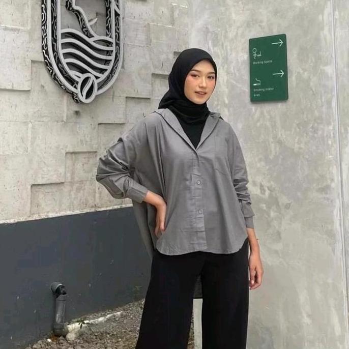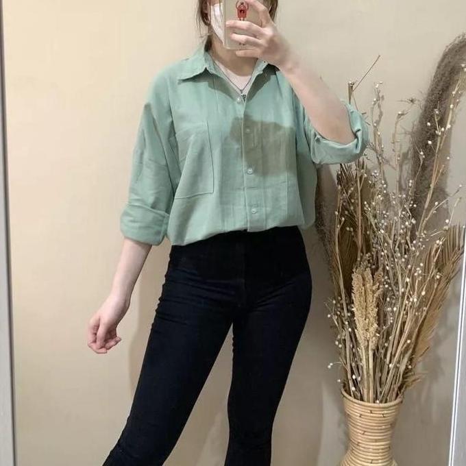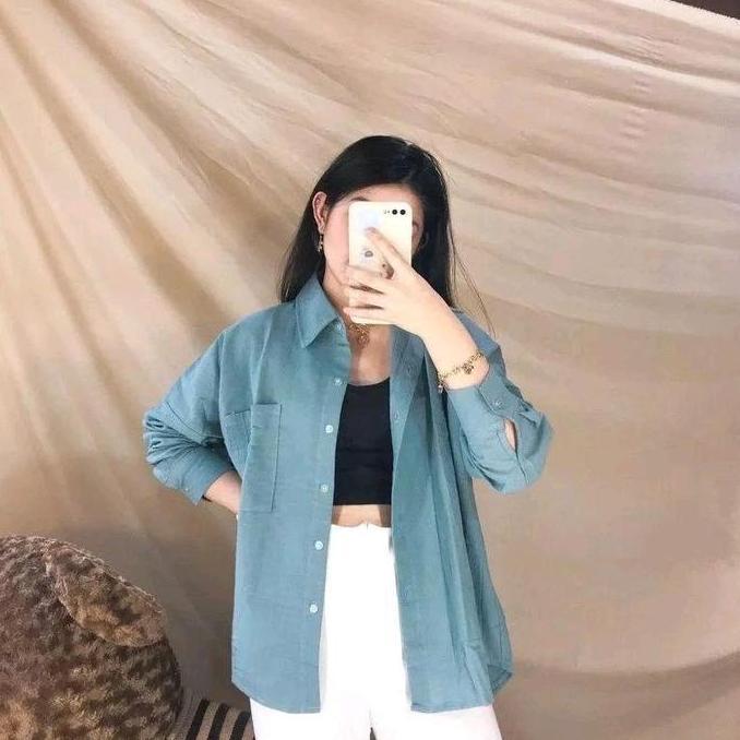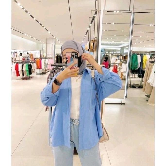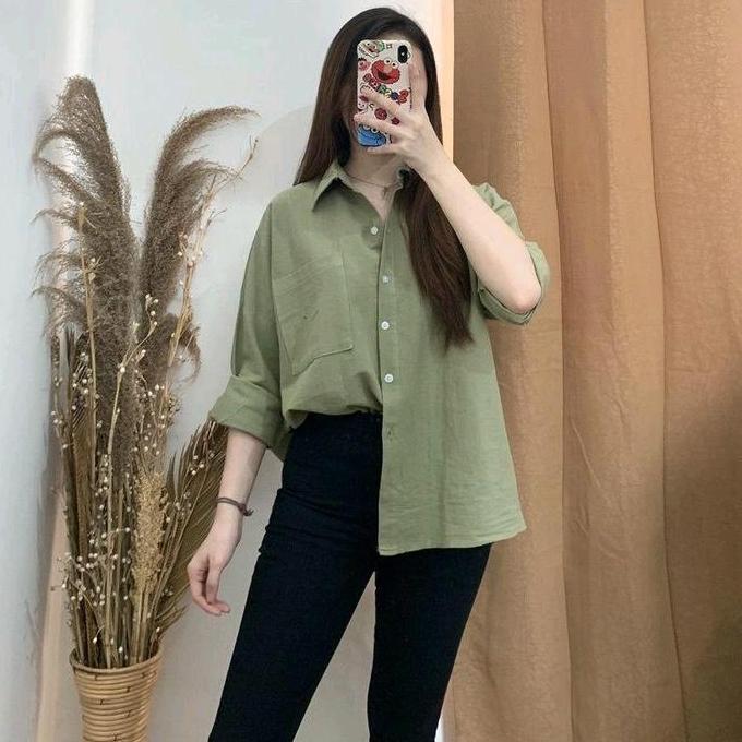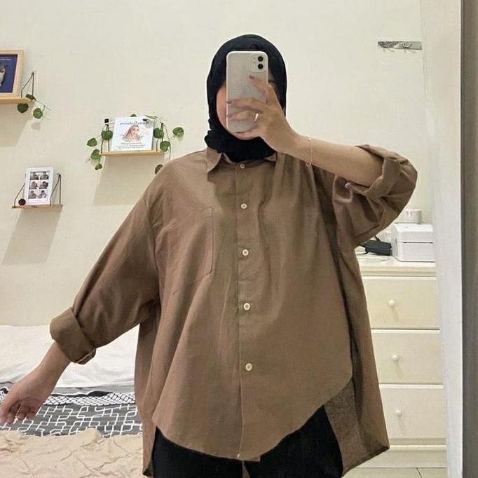 Premium Kemeja Oversize Linen Rami Ld 120Cm Baju Atasan Wanita