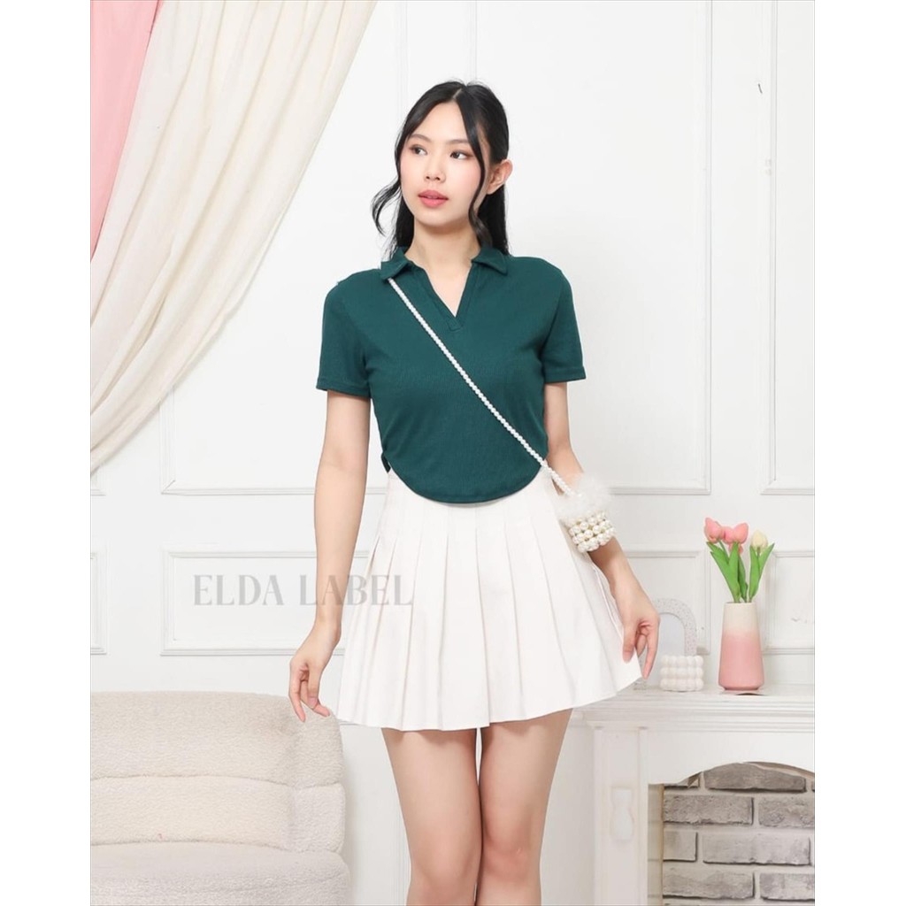 BEST SALE Elda label crop top v neck oval kekinian lengan pendek wanita cod kaos cewek Cantik