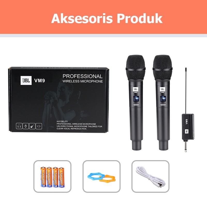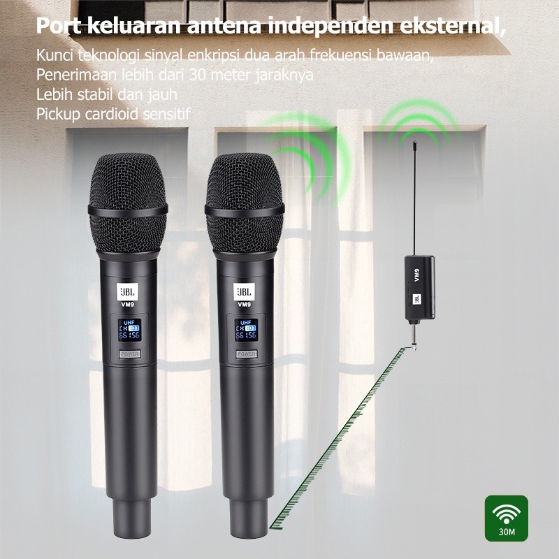 JBL/original VM9,mik wireless,mik karaoke,mic karaoke suara jernih,mic wireless,mic karaoke,wireless mikrofon,wireless microphone,vocal suara terbaik Dual handheld wireless mic new