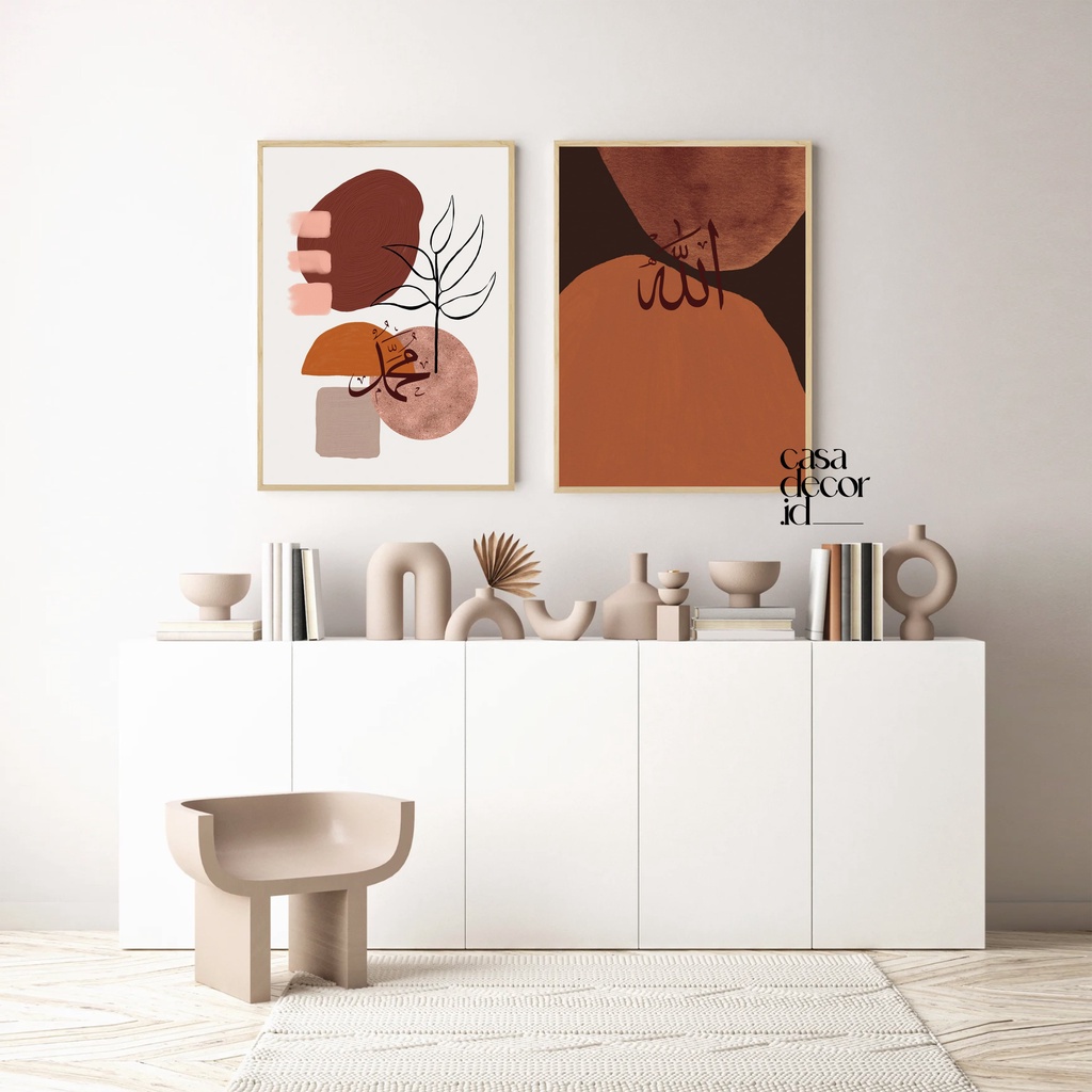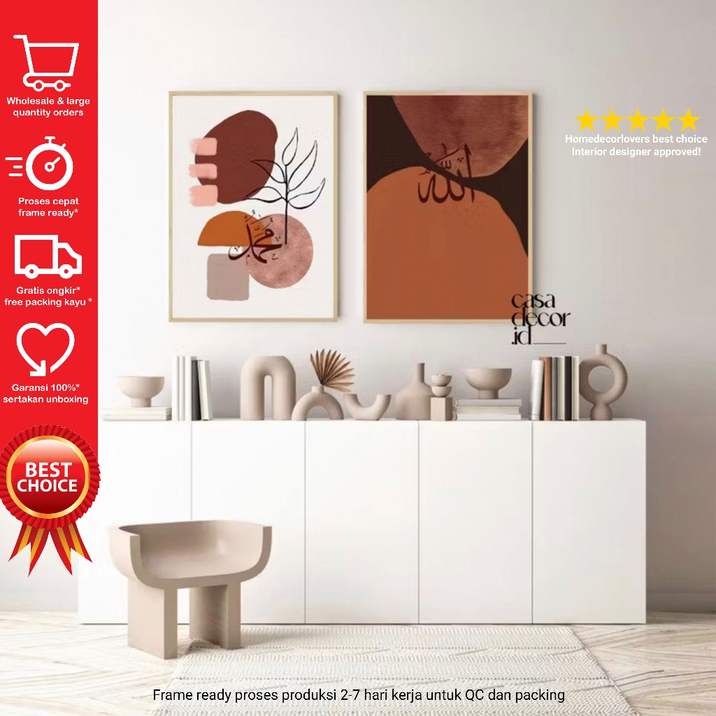 Hiasan Dinding (Value Pack) Walldecor Islamic Aesthetic Lafadz Allah Muhammad (A21-A40) Frame Solid Wood size 30x40cm 1 set (DAPAT isi 2pcs) by Casadecor.id C1110