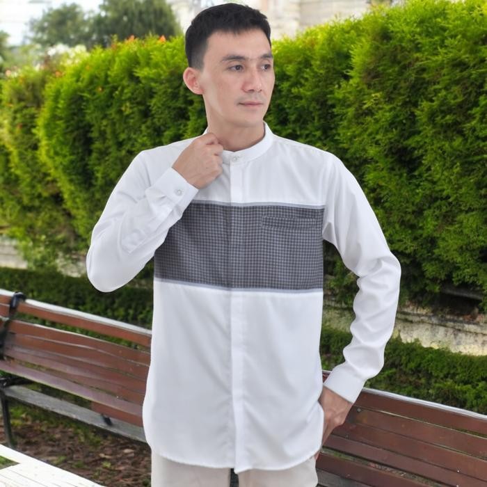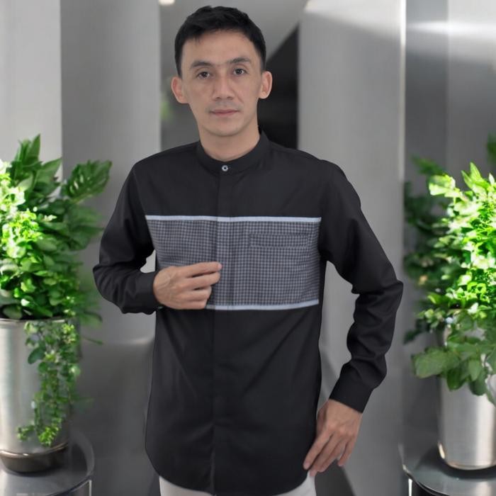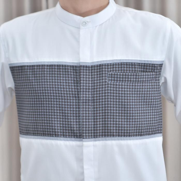 Al Jami - Arga Kemeja Koko Muslim Pria Lengan Panjang Manset Toyobo Kombinasi Kotak Baju Formal Kain