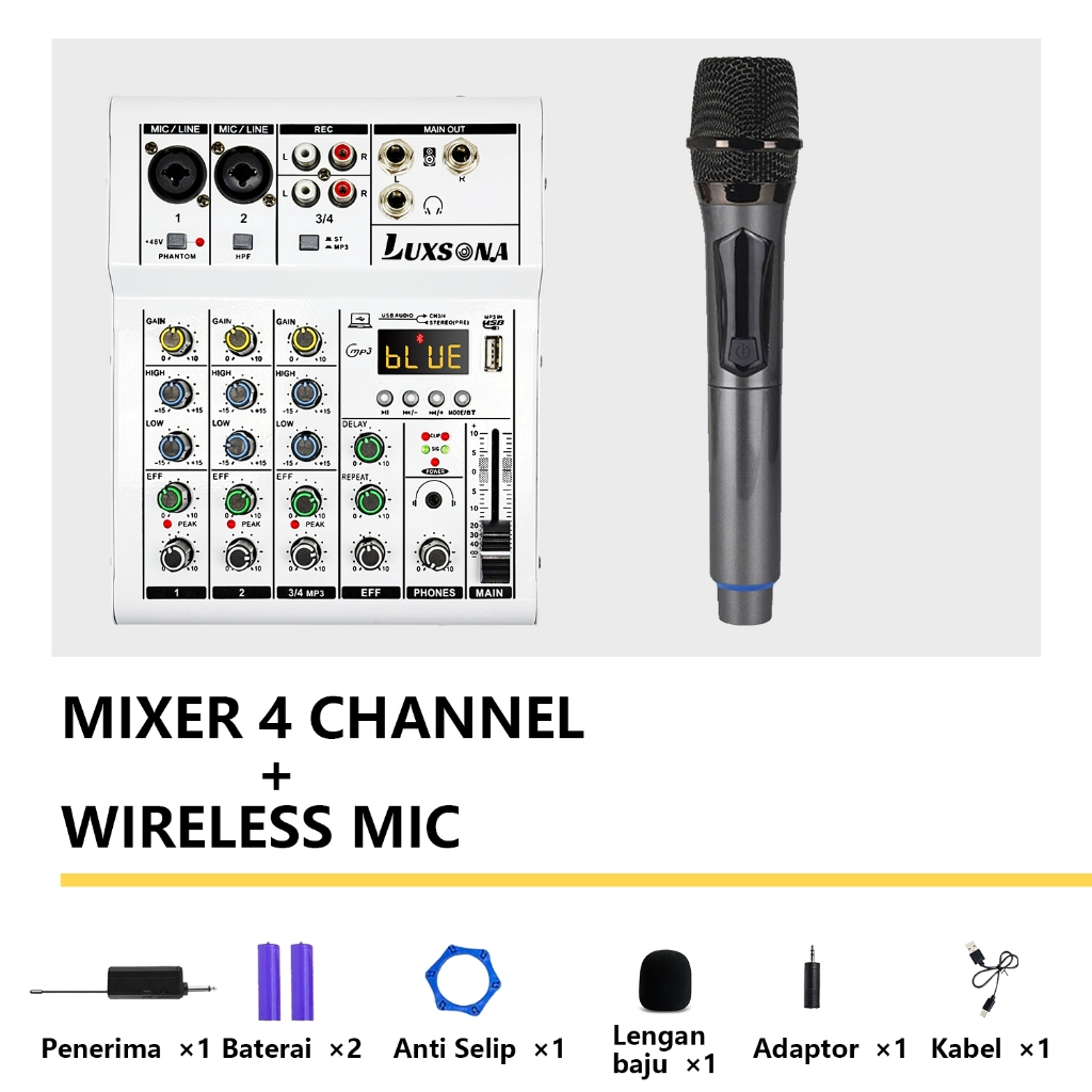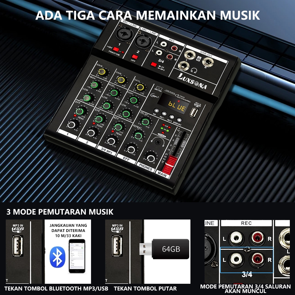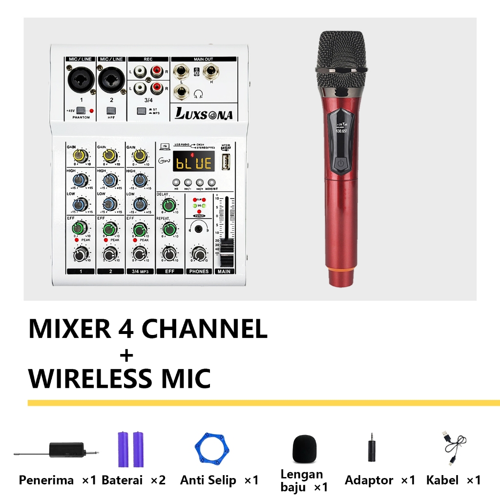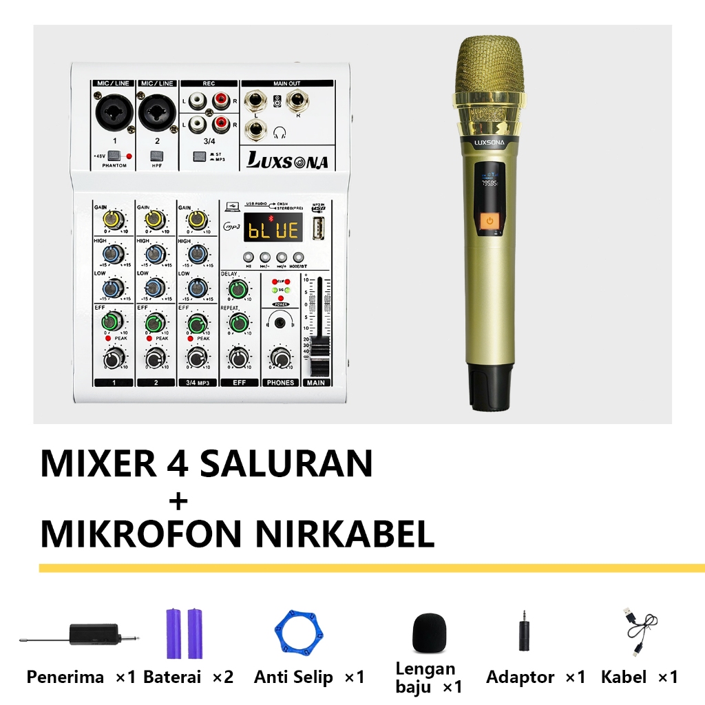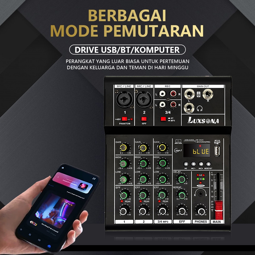 LUXSONA Mixer 4 chanel/mixer audio/99DSP 4 chanel mixer mini /Amplifier Bluetooth Mini profesional/Soundcard USB mikser audio termurah murah ashlley premium 4 chanel audio Audio mixer