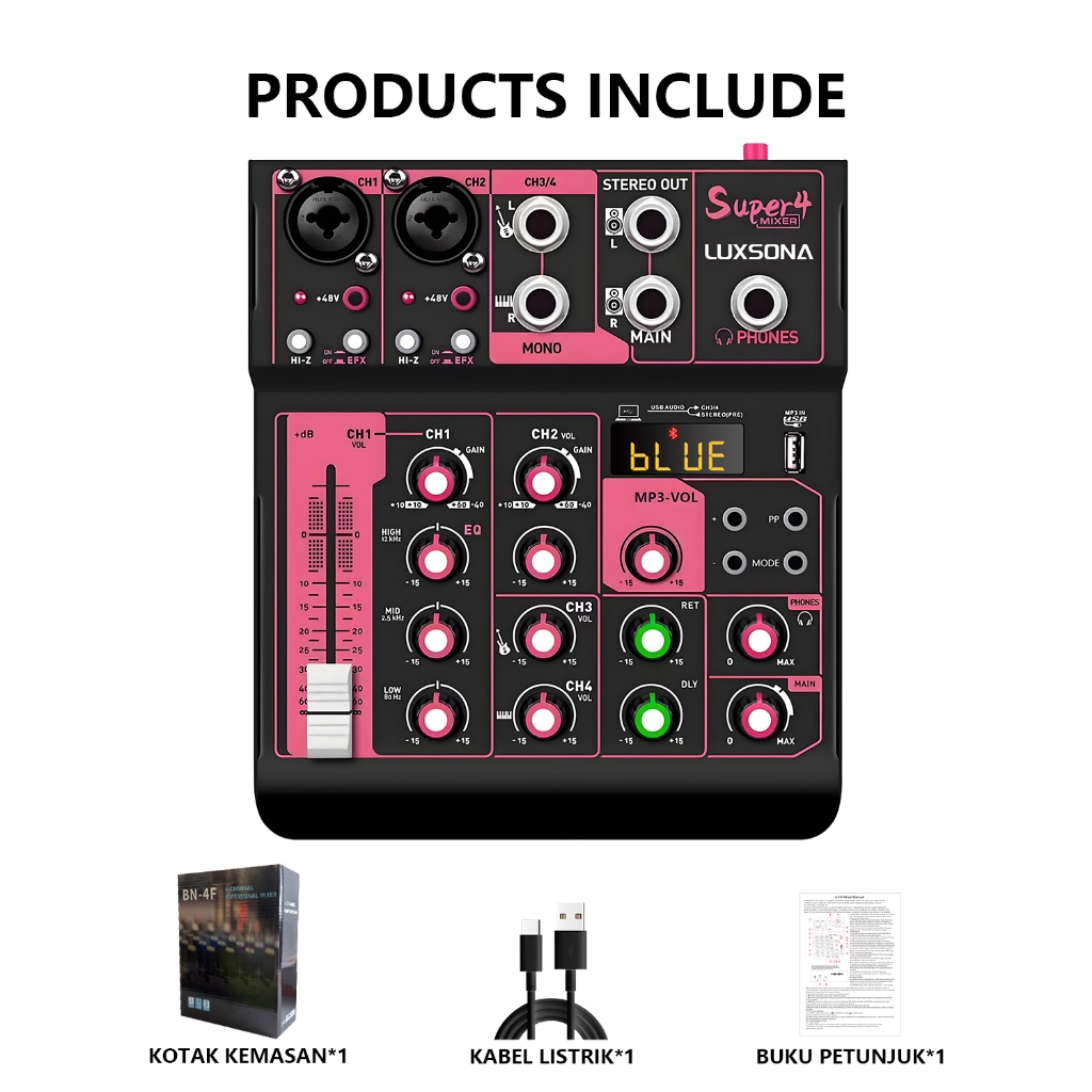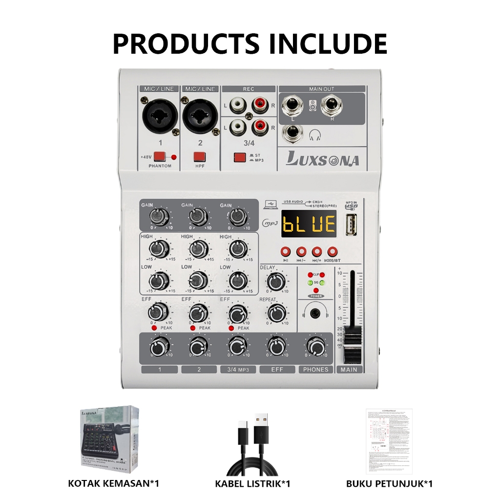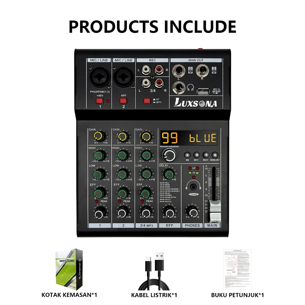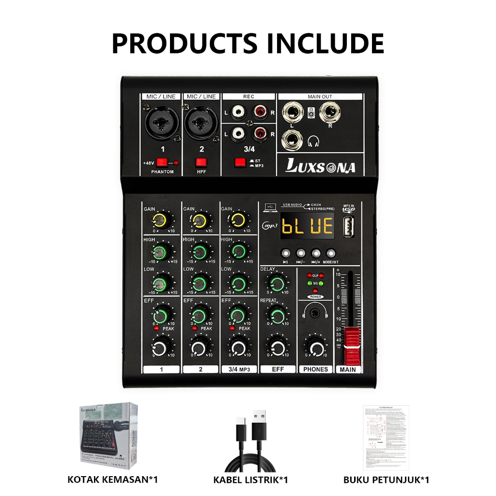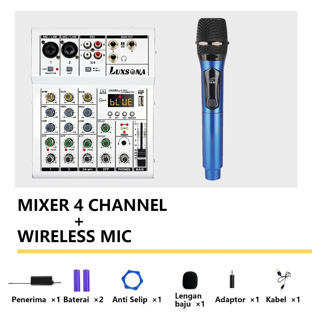 LUXSONA Mixer 4 chanel/mixer audio/99DSP 4 chanel mixer mini /Amplifier Bluetooth Mini profesional/Soundcard USB mikser audio termurah murah ashlley premium 4 chanel audio Audio mixer