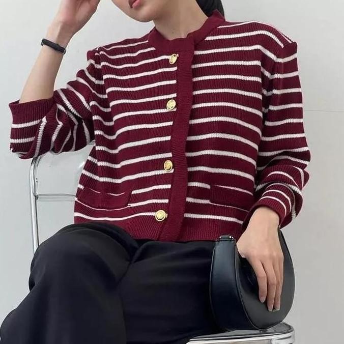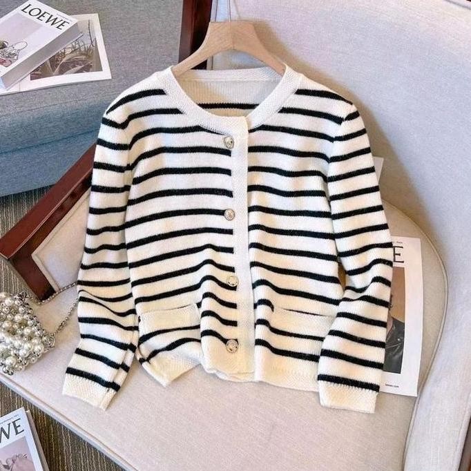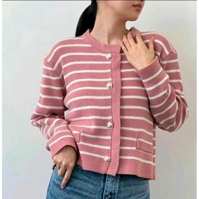 Sale Adzkiaa.Id_Cesy Cardigan Crop Top | Sweater Wanita Knitwear Atasan Outer Garis