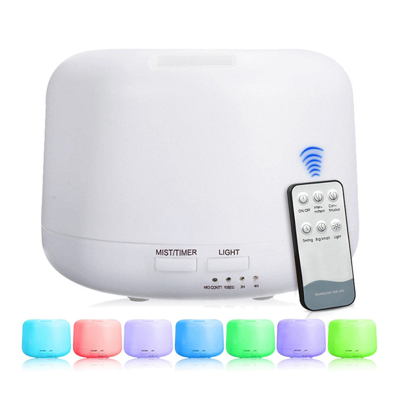 AUXOM Humidifier Aroma Terapi Diffuser 500ML+Essential Oil Remote Control 7 LED Light Air Purifier Aromatherapy Pengharum Pelembab Udara
