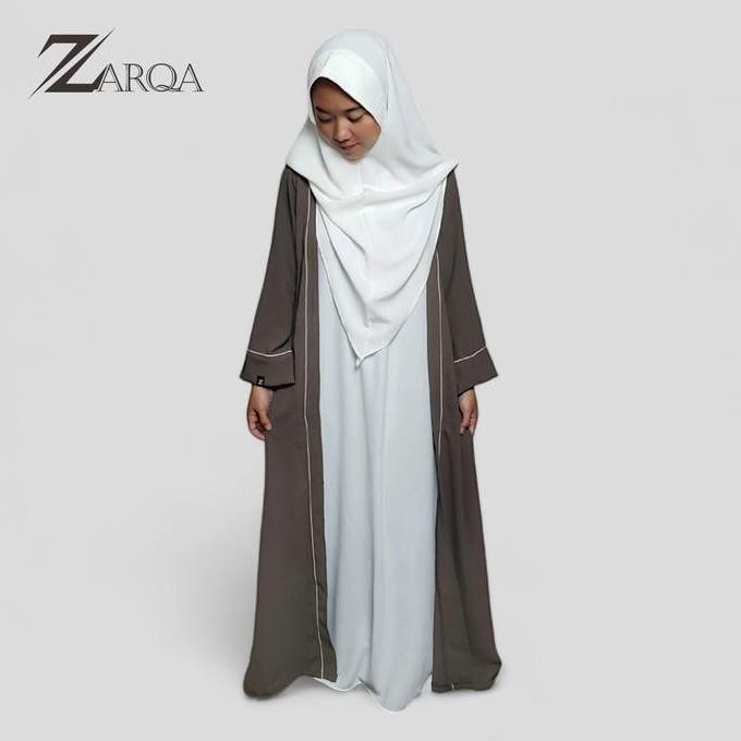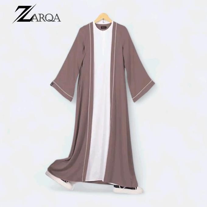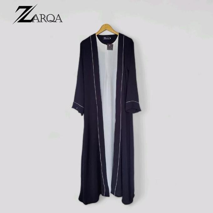 Zarqa - Luna Gamis | Abaya Two Tone Dua Warna Airflow Crinkle List Bisban Polos Wanita Muslim Turki Dewasa Lebaran Mewah Pesta Kondangan Hitam Abaya Syar'I Remaja Abaya Santri Best Seller
