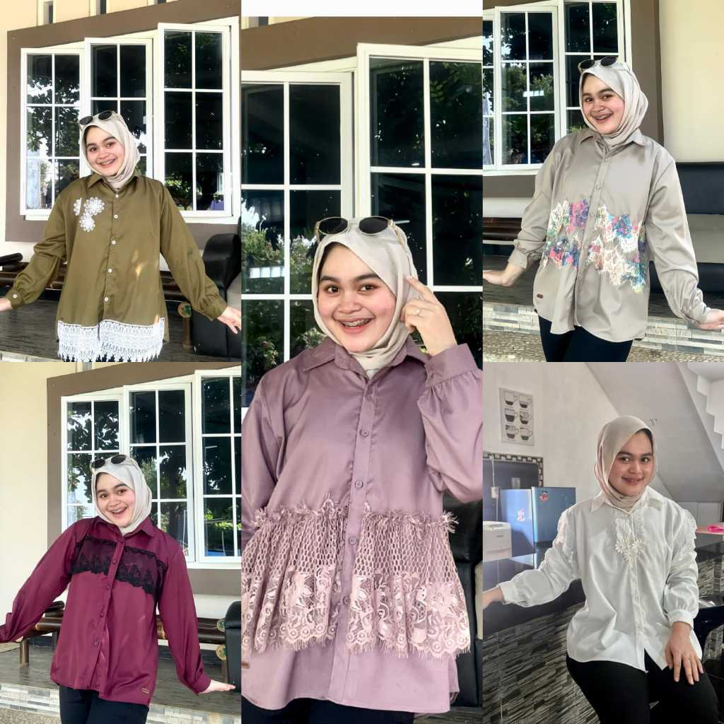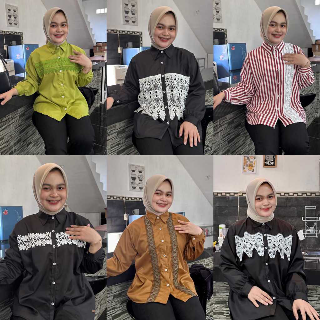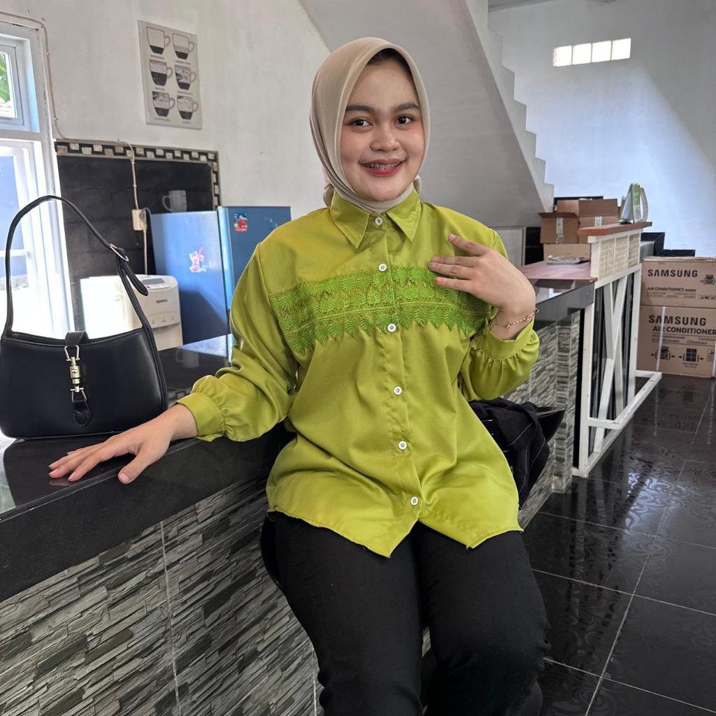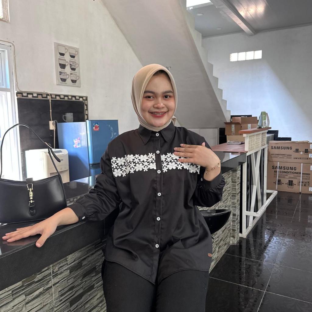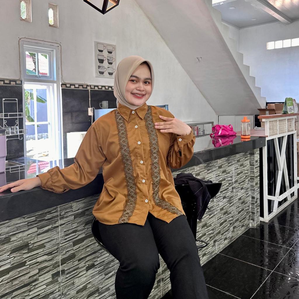 Atasan Blouse Wanita LD 110 Lengan Panjang Kain Katun Variasi Renda