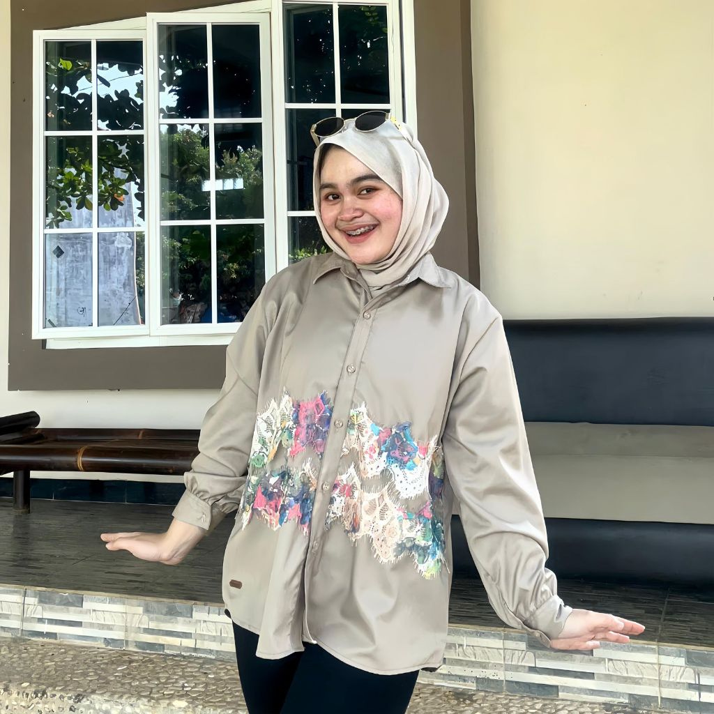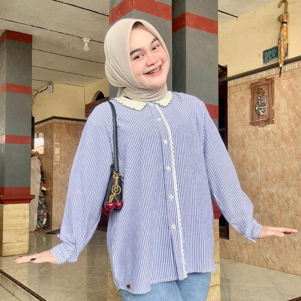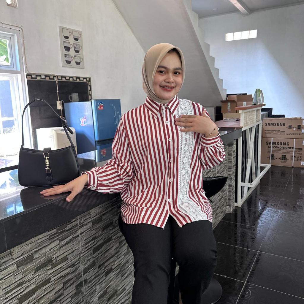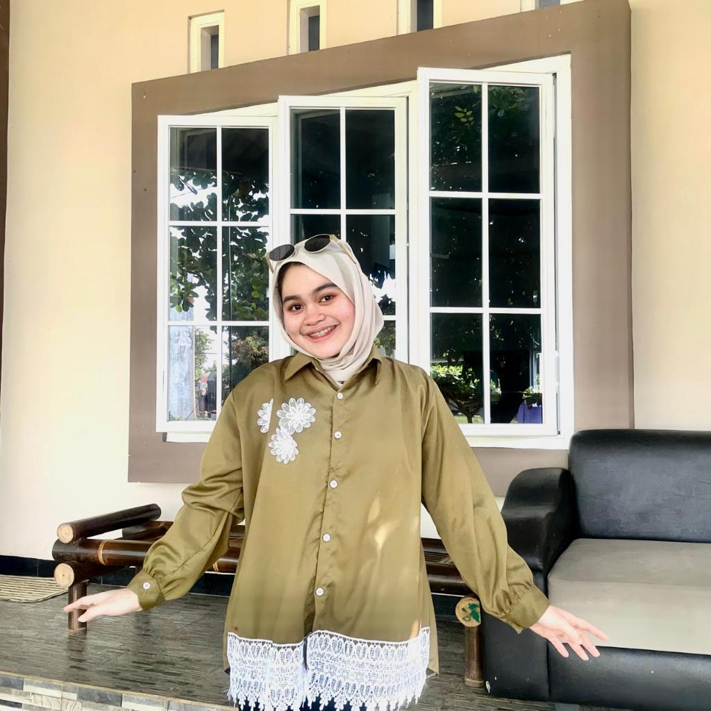 Atasan Blouse Wanita LD 110 Lengan Panjang Kain Katun Variasi Renda