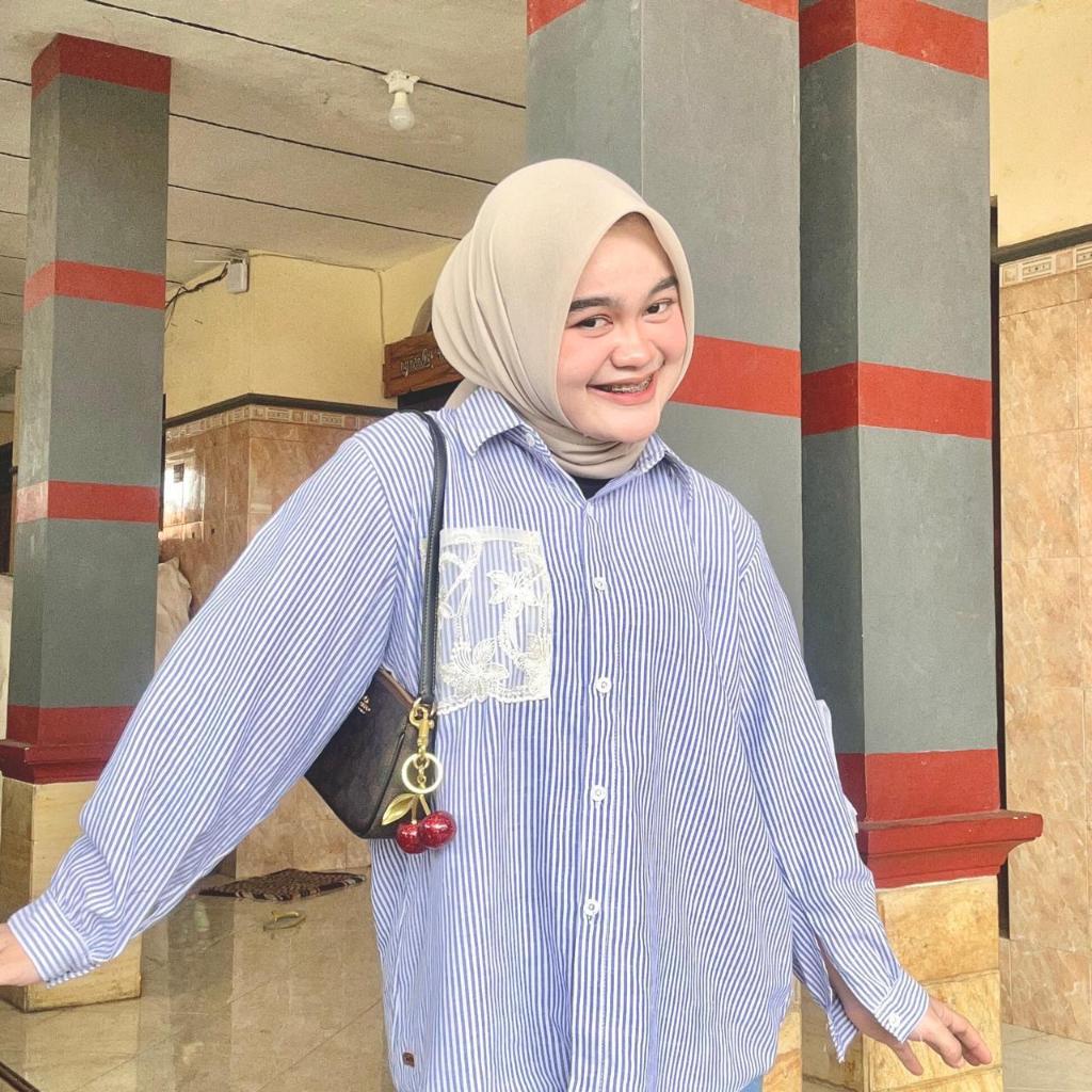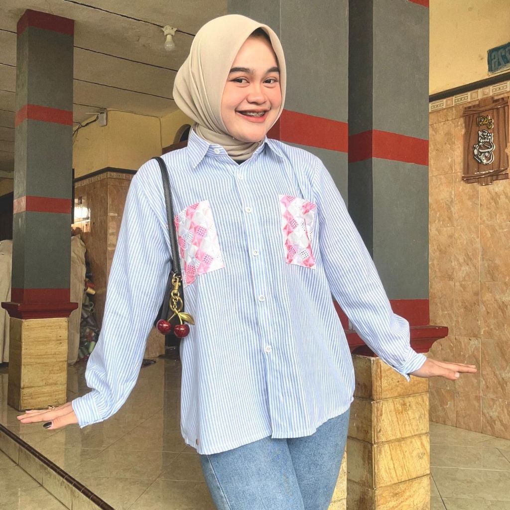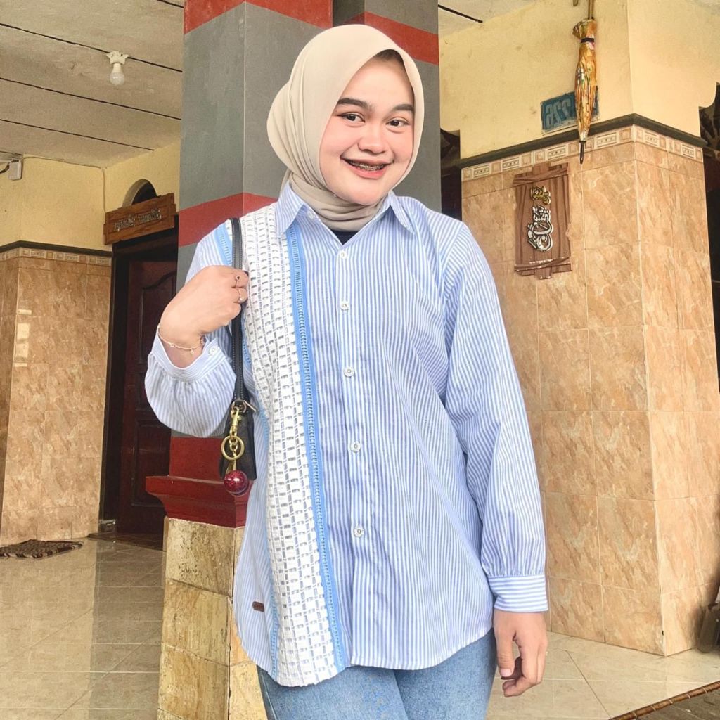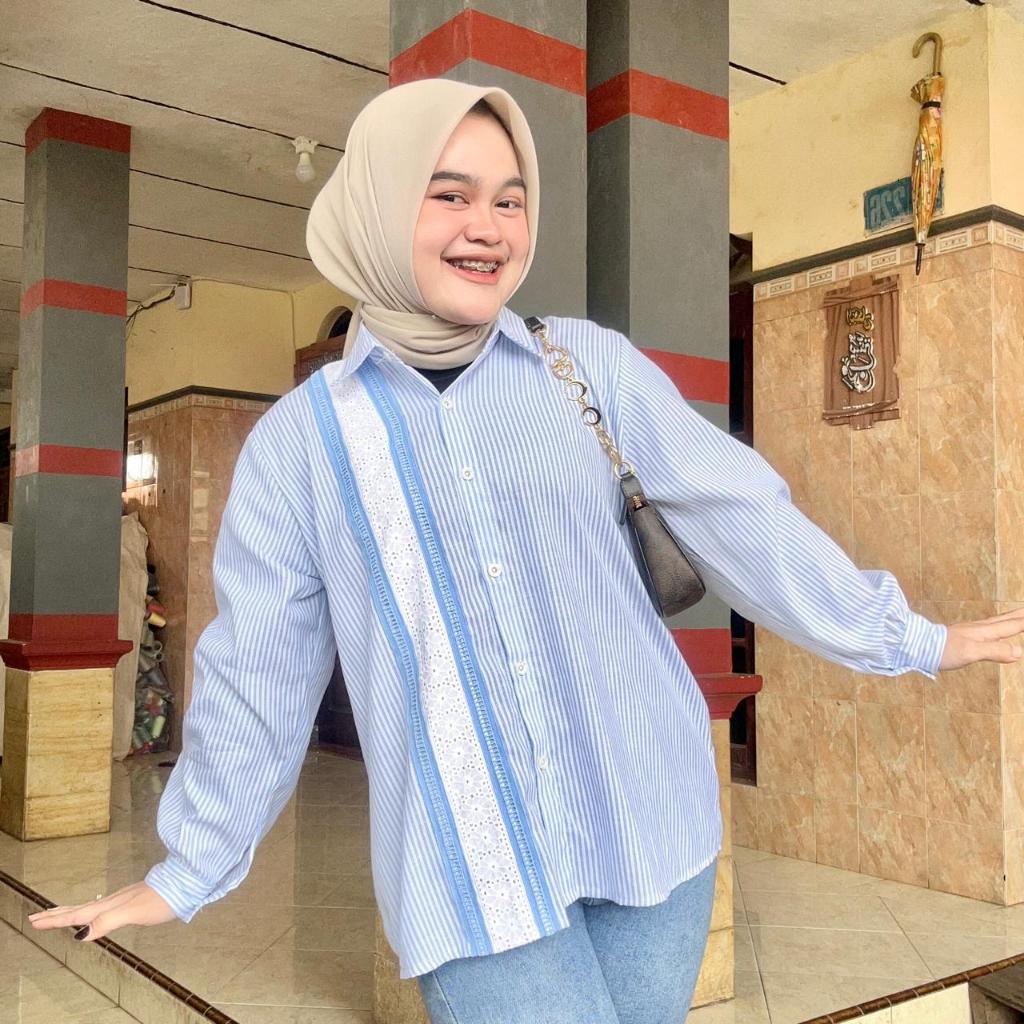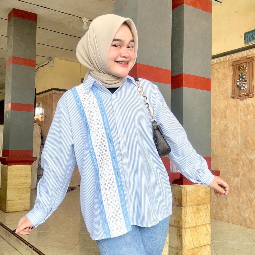 Atasan Blouse Wanita LD 110 Lengan Panjang Kain Katun Variasi Renda