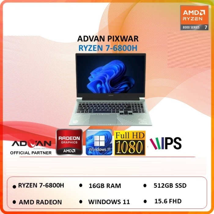 Laptop Advan Pixel War PixWar Transformers Ryzen 7 6800H 16GB 512GB Win11 FHD IPS