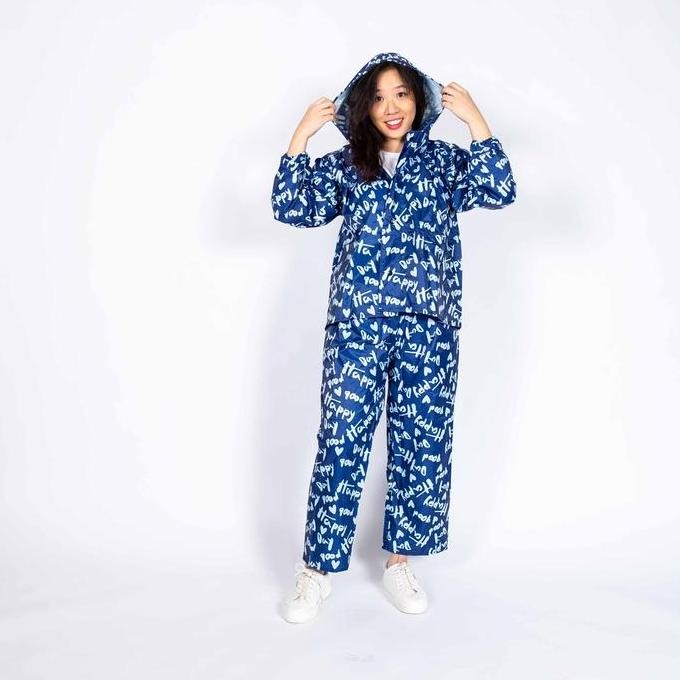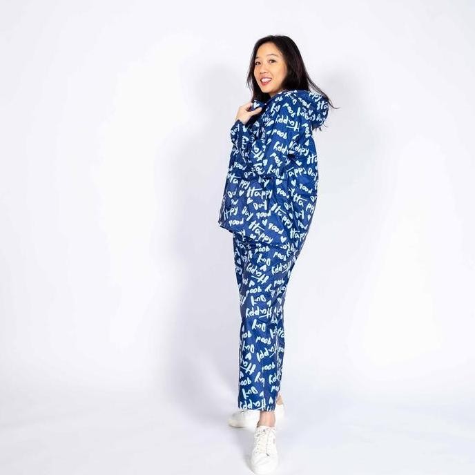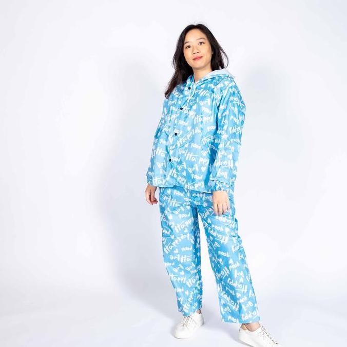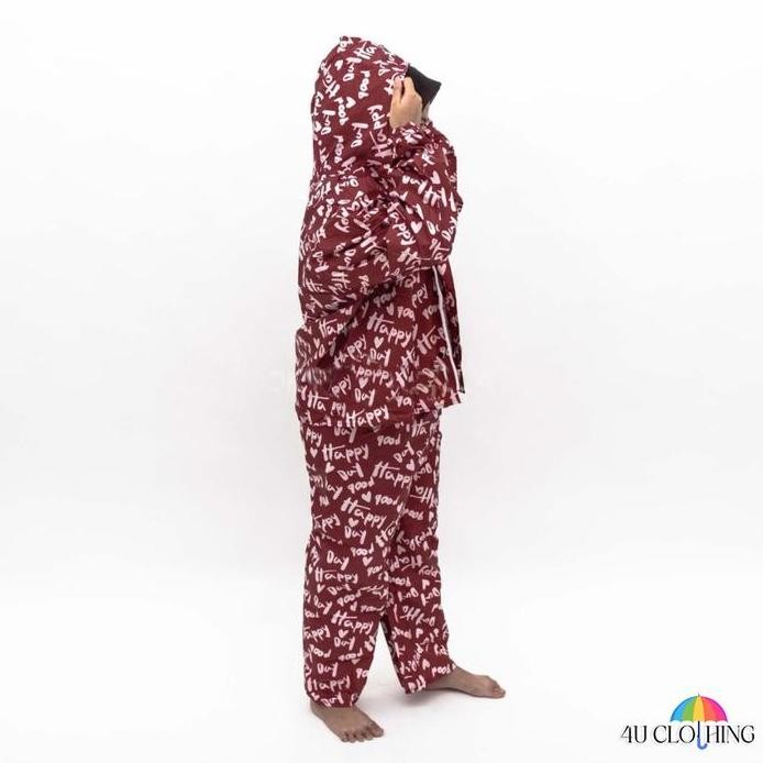 ready Jas hujan setelan wanita mantel murah motif tulisan 81018 4U CLOTHING