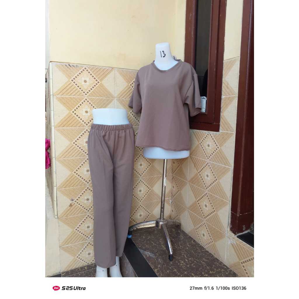 setelan celana kulot baju pendek bahan knit japan casual santai wanita | setelan knit japan celana panjang piyama lengan pendek setcel murah baju tidur