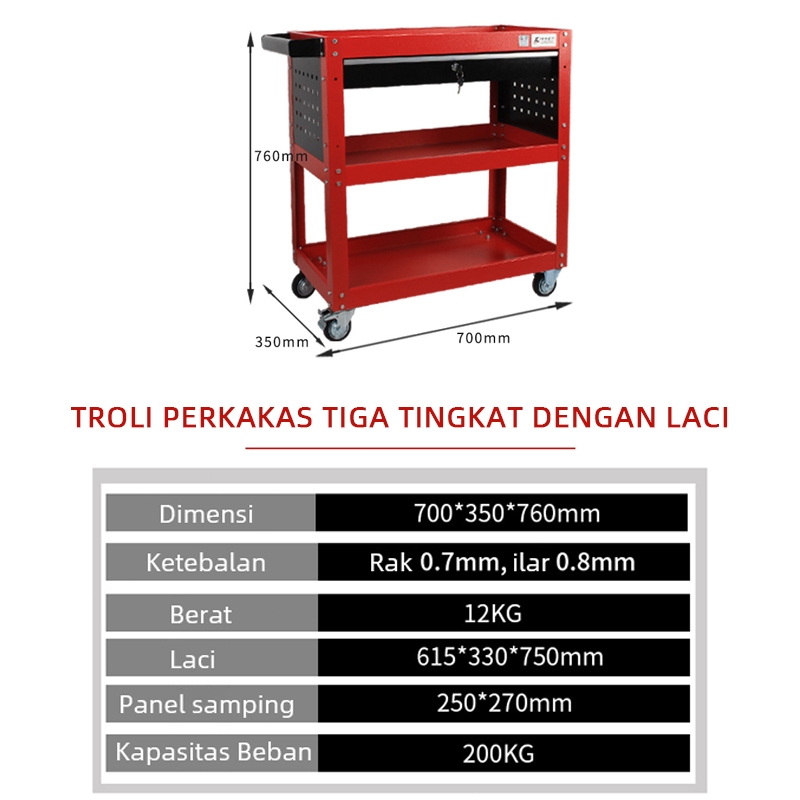 [Dengan Laci]Rak Perkakas/Troli Perkakas Bengkel Dengan Laci Troli Bengkel 3 Susun + Rak Perkakas Trolley Trolly Berkualitas