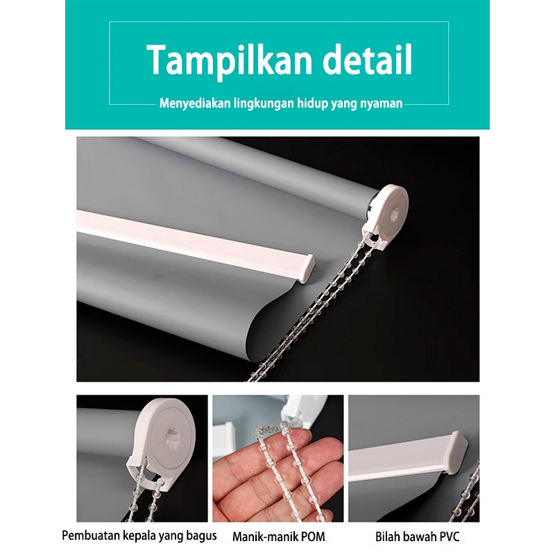 Roller Blind Blackout Tirai Gulung 100% Tirai Jendela Minimalis untuk Anti Jamur Privasi Anda