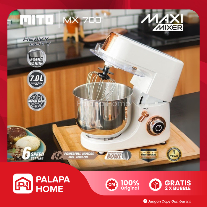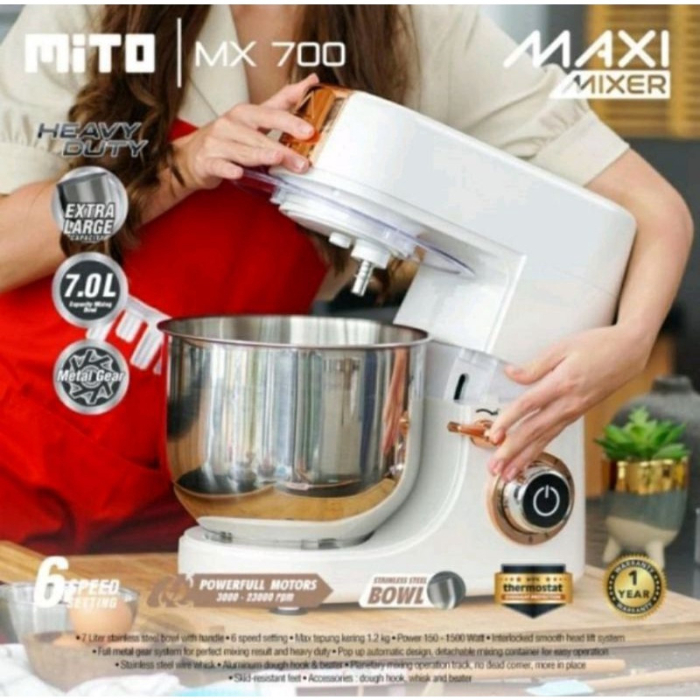 Mito Stand Maxi Mixer 7 Liter MX700 Stainless Bowl Metal Gear Kapasitas Besar 7L