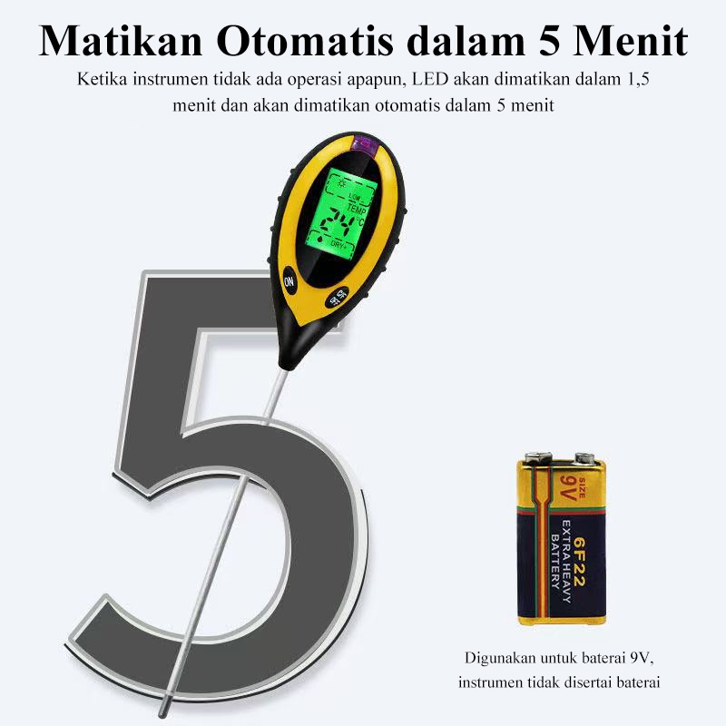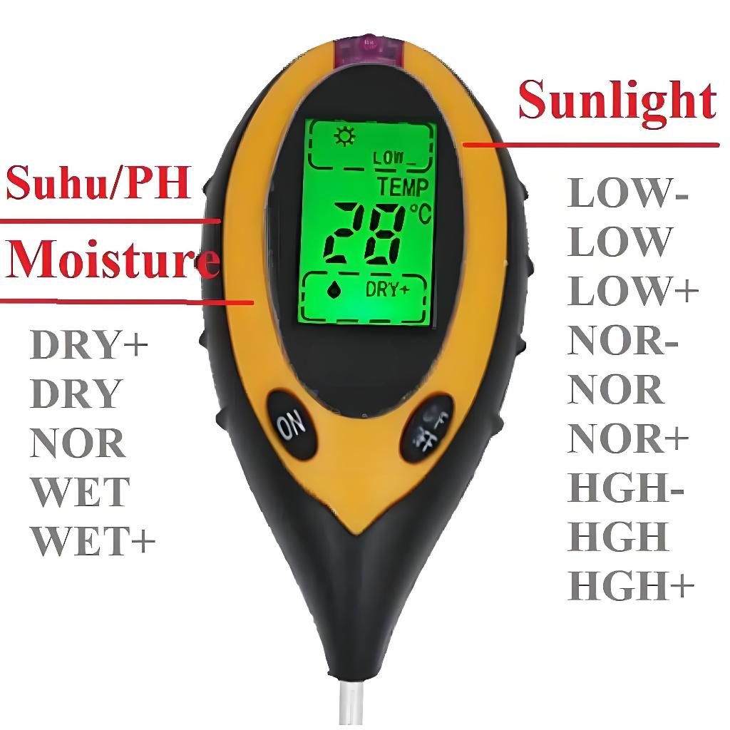 PlantMate Soil Analyzer Tanah Tester Meter Moisture Meter PH Meter Sunlight Meter Suhu Alat Ukur 4 in 1