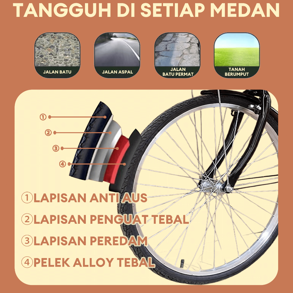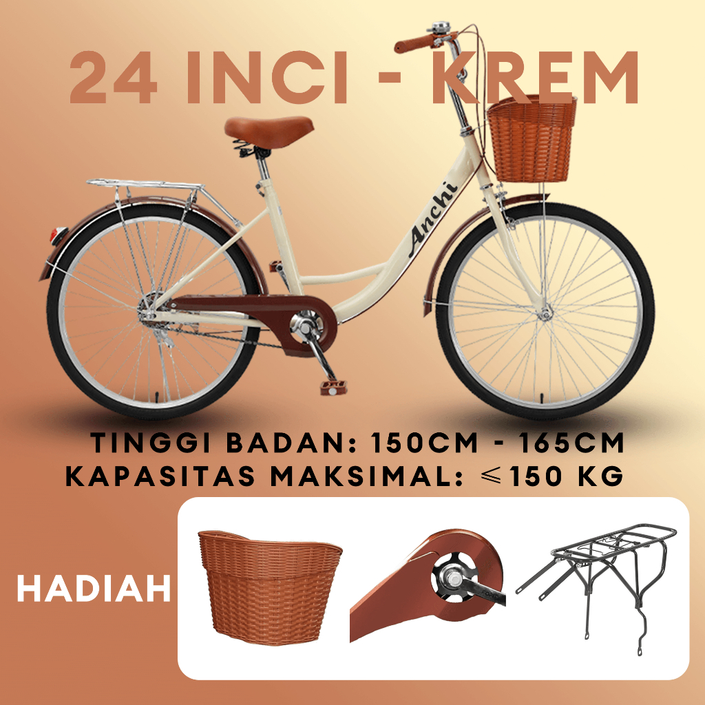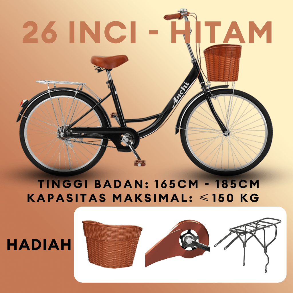 Sepeda Dewasa Kota ALLOY 24/26INCH - Bonus Keranjang & Boncengan,Sepeda Model Ladies,Sepeda Renda, Cocok untuk Remaja Komuter Tinggi 145-180 cm | Sepeda Lipat, Pit Retro Style, Road Bike, Sepeda Ontel, Sepeda Tandem, Kendaraan Tanpa Mesin, Shopping Bicycl