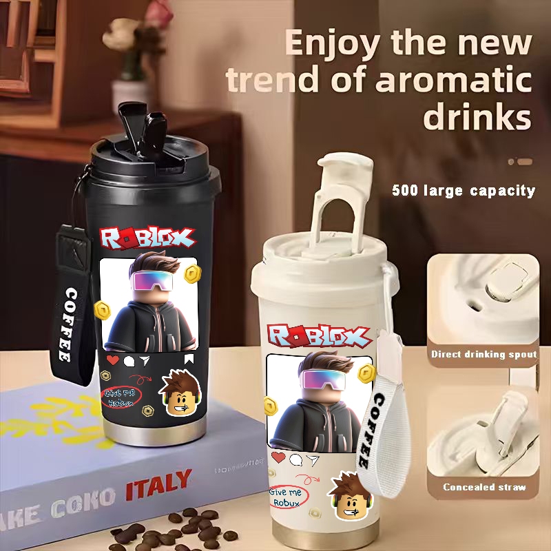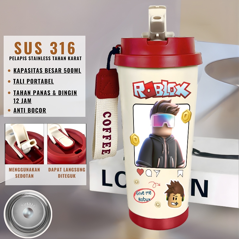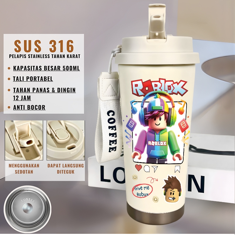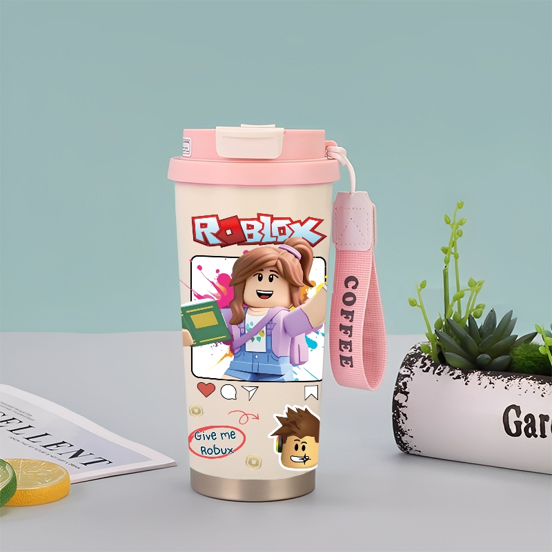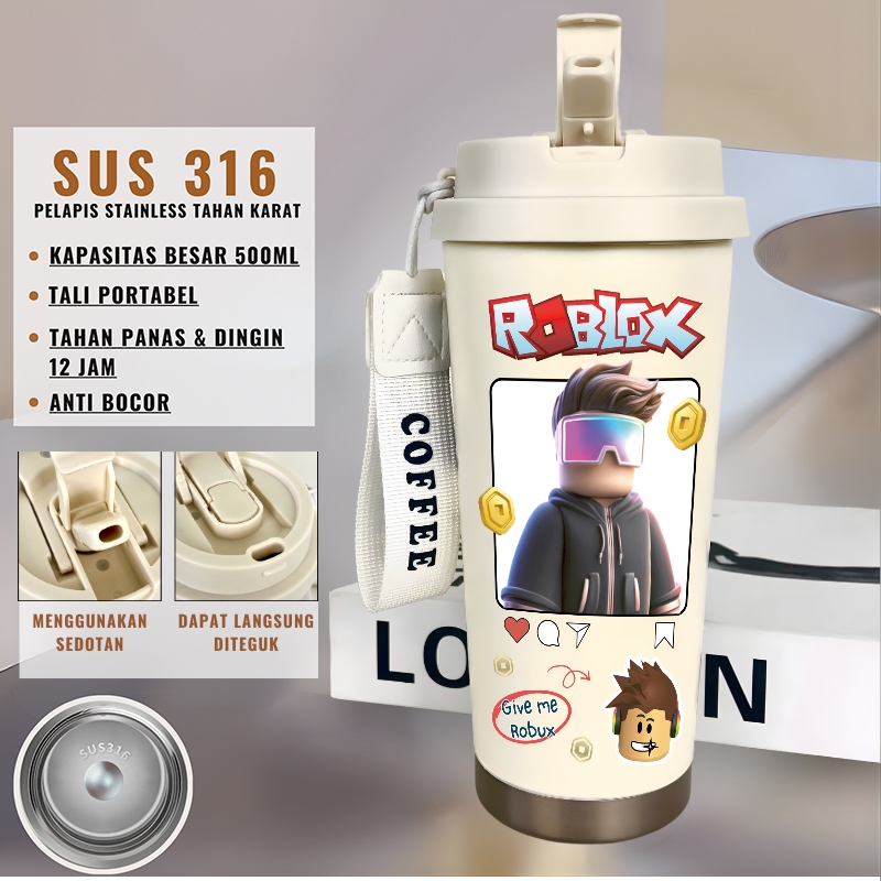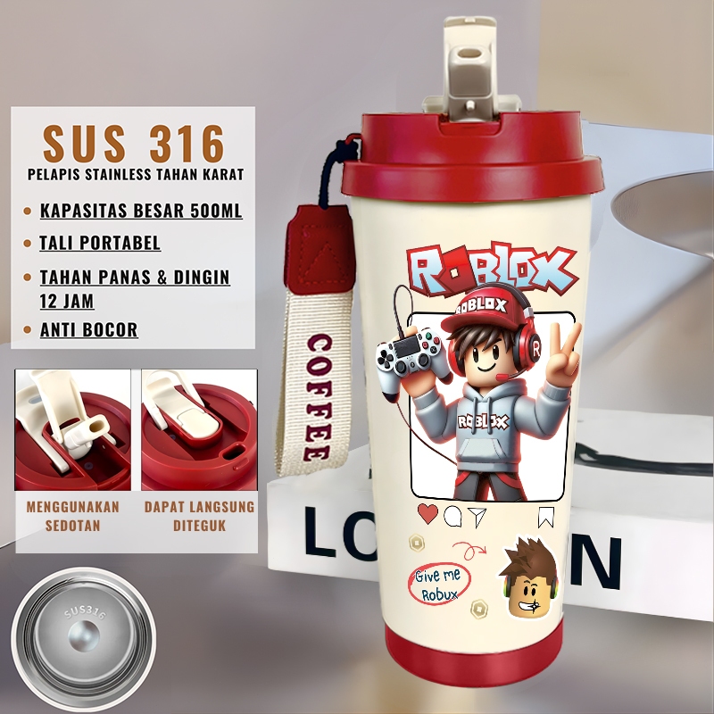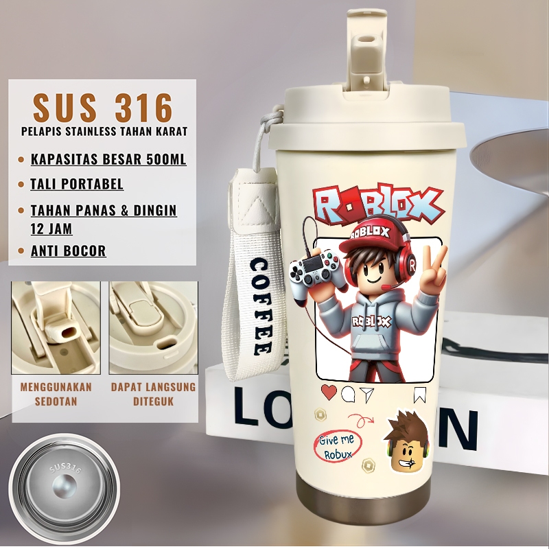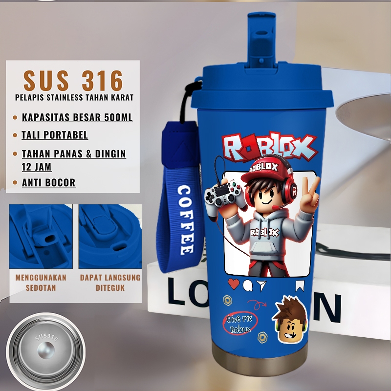 Tumbler Roblox Game Seru 500ml Stainless Steel SUS 316 Botol Minum Anak Gamer Karakter Roblox Anti Bocor Tahan Panas & Dingin 12 Jam dengan Sedotan Portable
