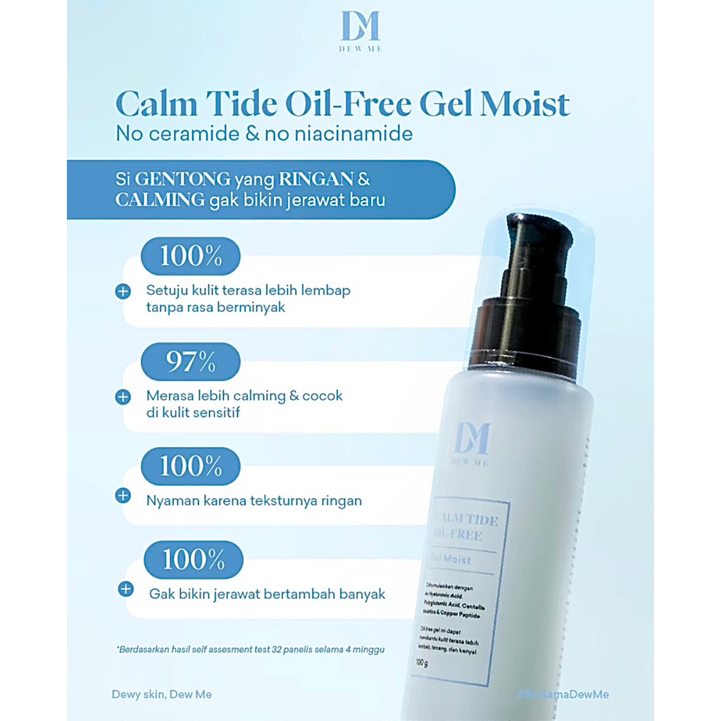 Dew Me Calm Tide Oil-Free Gel Moist 100 g Pelembab Wajah Oil Free, No Ceramide & No Niacinamide