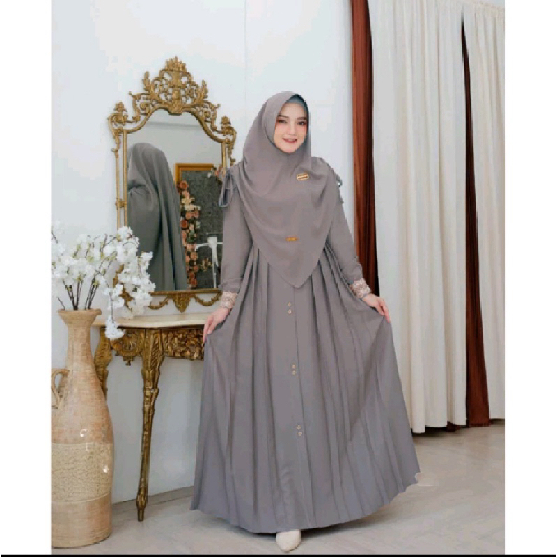 CUCI GUDANG (Harga Grosir ) Gamis Mawadah Syari set Hijab Terbaru Bahan Crinkle Airflow Premium