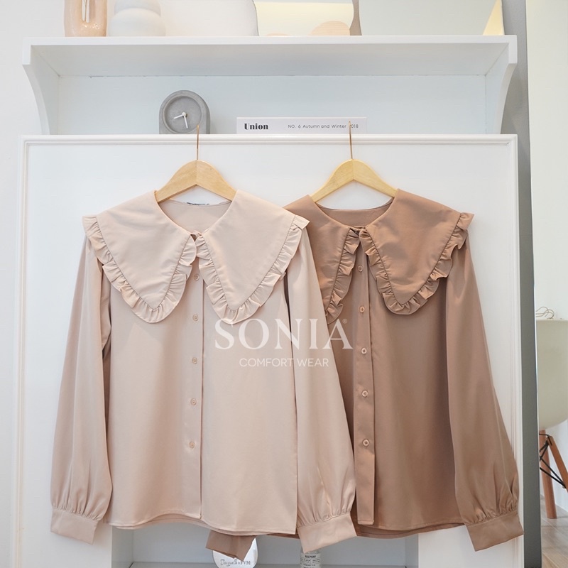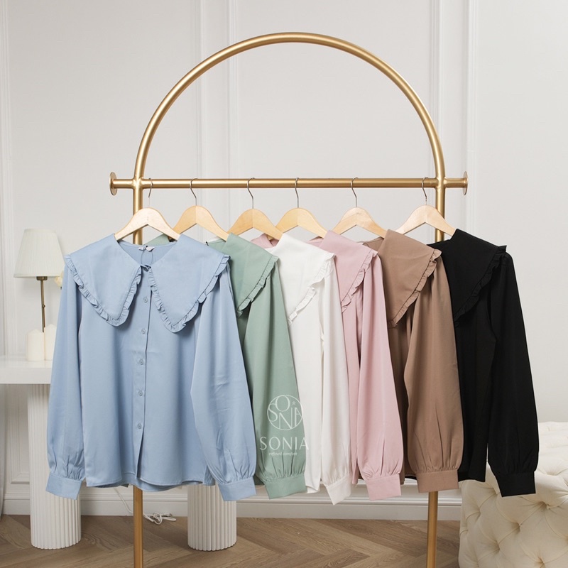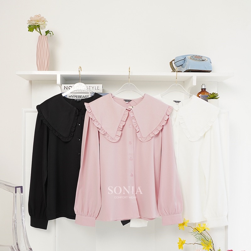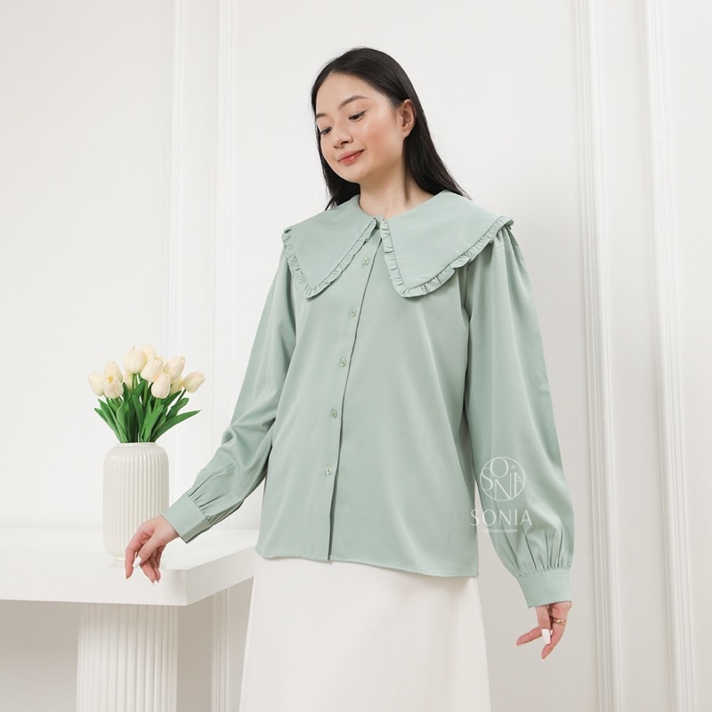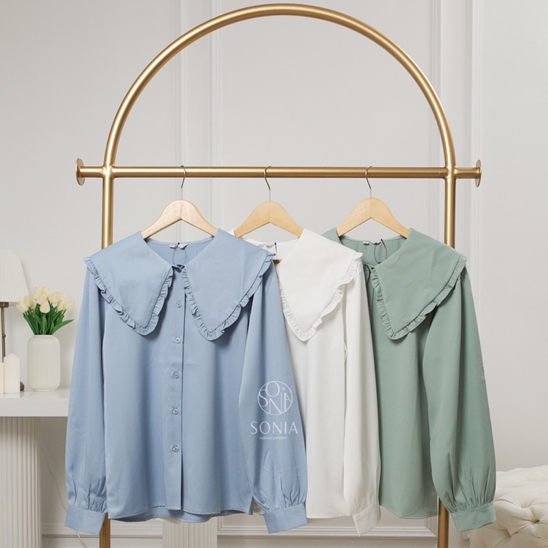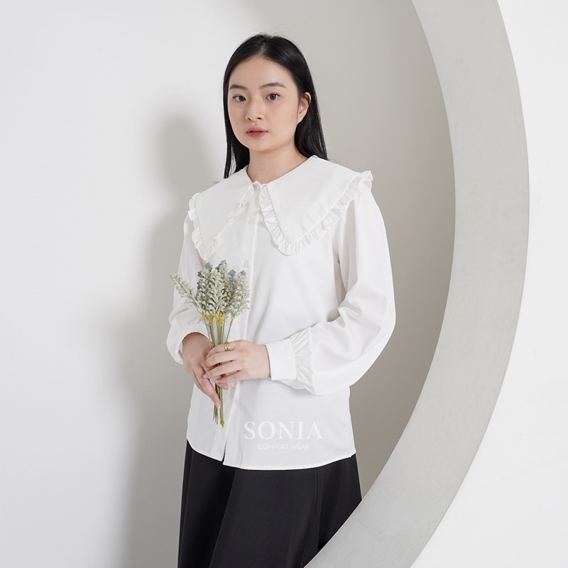 Minhe Top B11931 SONIA | Kemeja katun Premium wanita | Blouse Korea Wanita | Kemeja ruffle polos